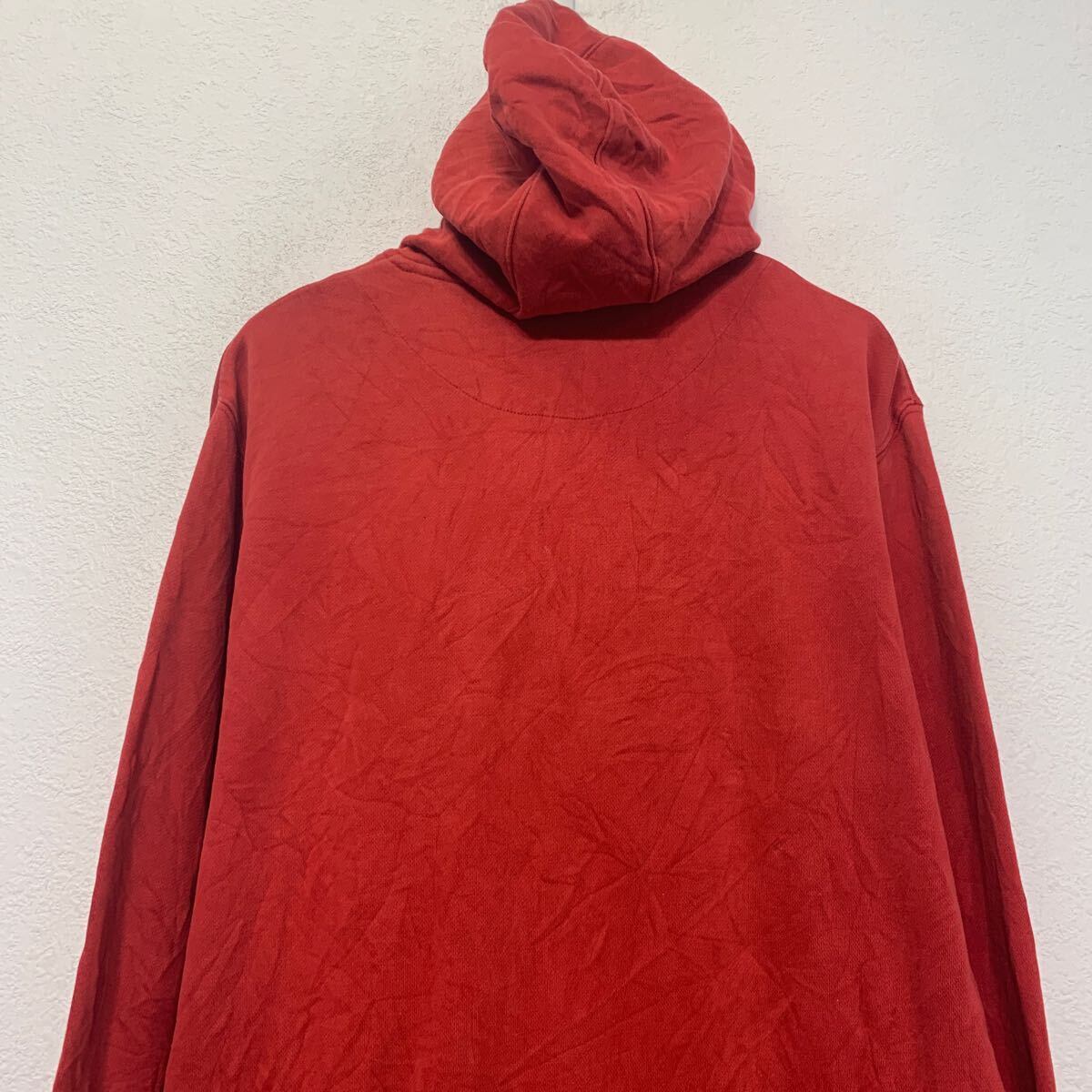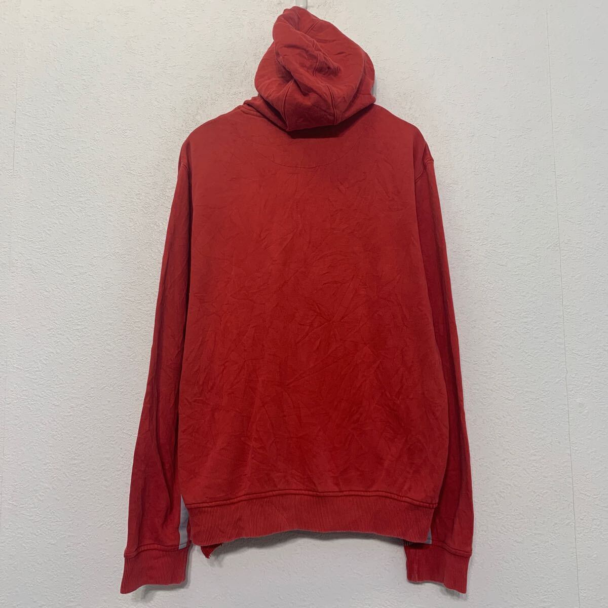 NIKE ロゴスウェット パーカー ナイキ M レッド グレー フルジップ ポケット付き ライン スポーティー 古着卸 アメリカ仕入 a610-7895