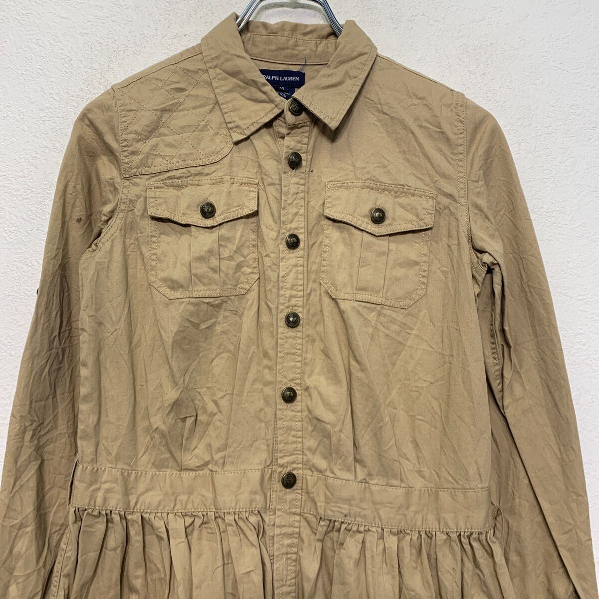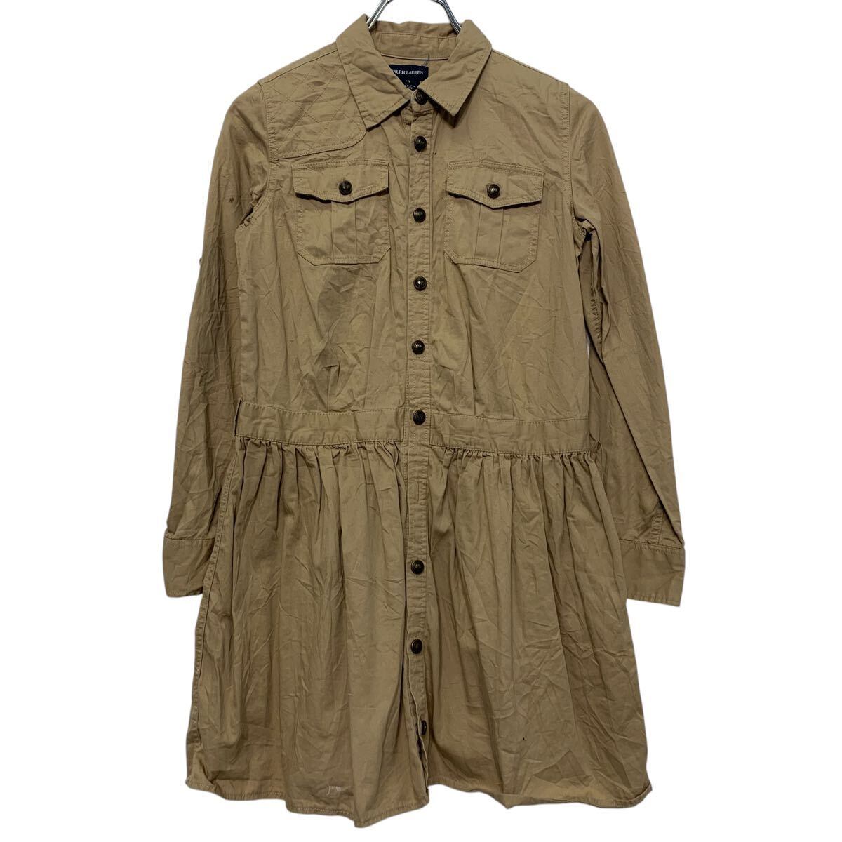 RALPH LAUREN 長袖 無地シャツ ラルフローレン レディース M 程 ベージュ ボタン ワンピース ポケット付き 古着卸 アメリカ仕入 a610-7917