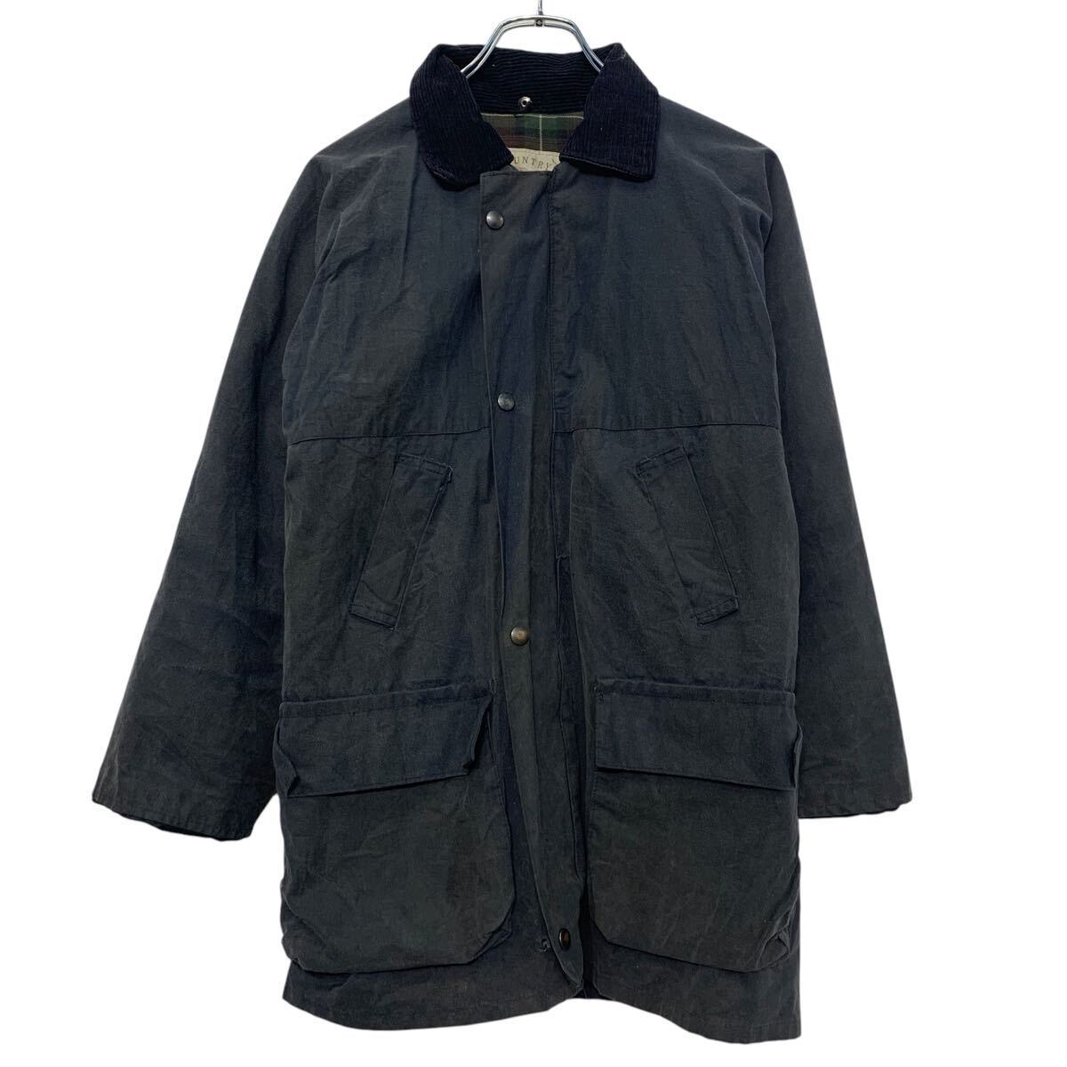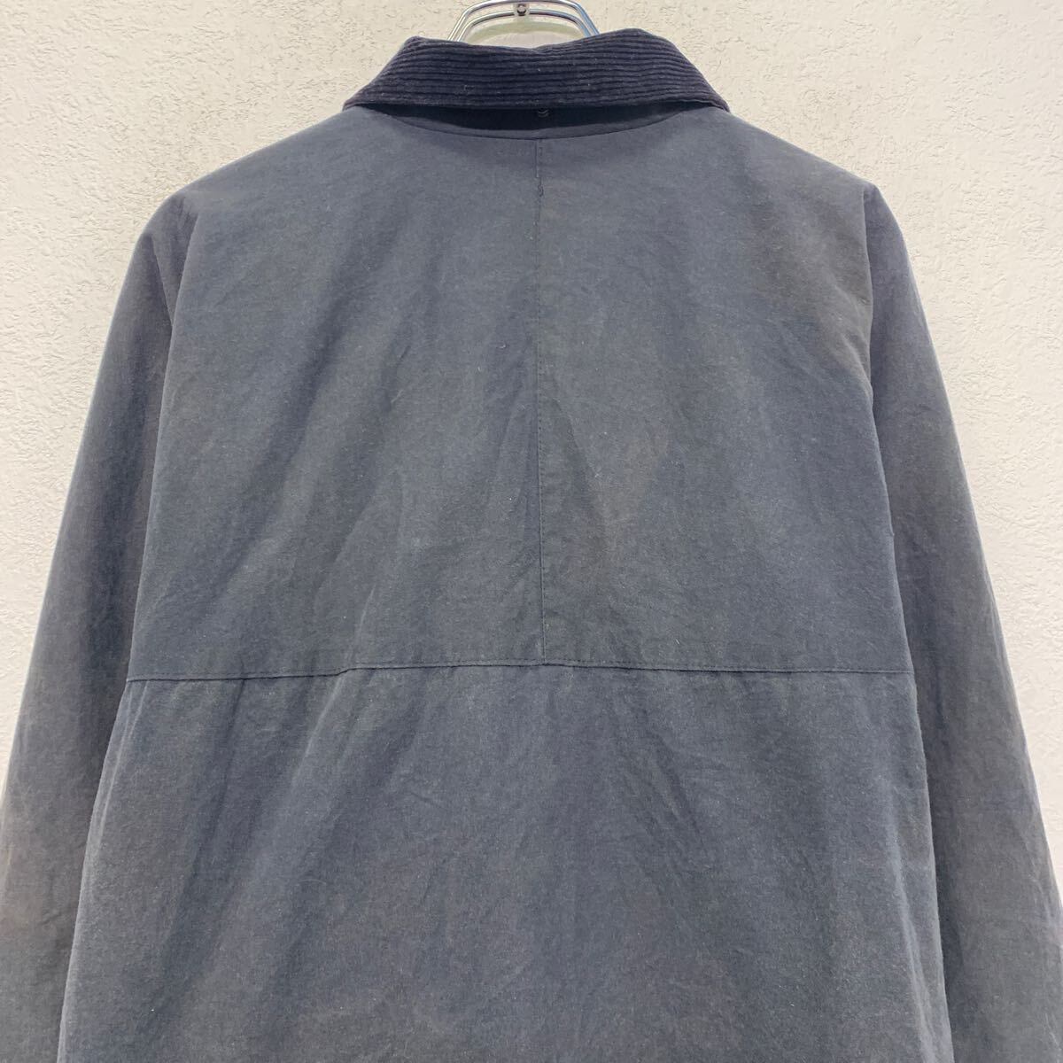 オイルドジャケット L 程 ダークグレー ジップアップ スナップボタン 襟 コーデュロイ 切替 ポケット付き 古着卸 アメリカ仕入 a610-7952