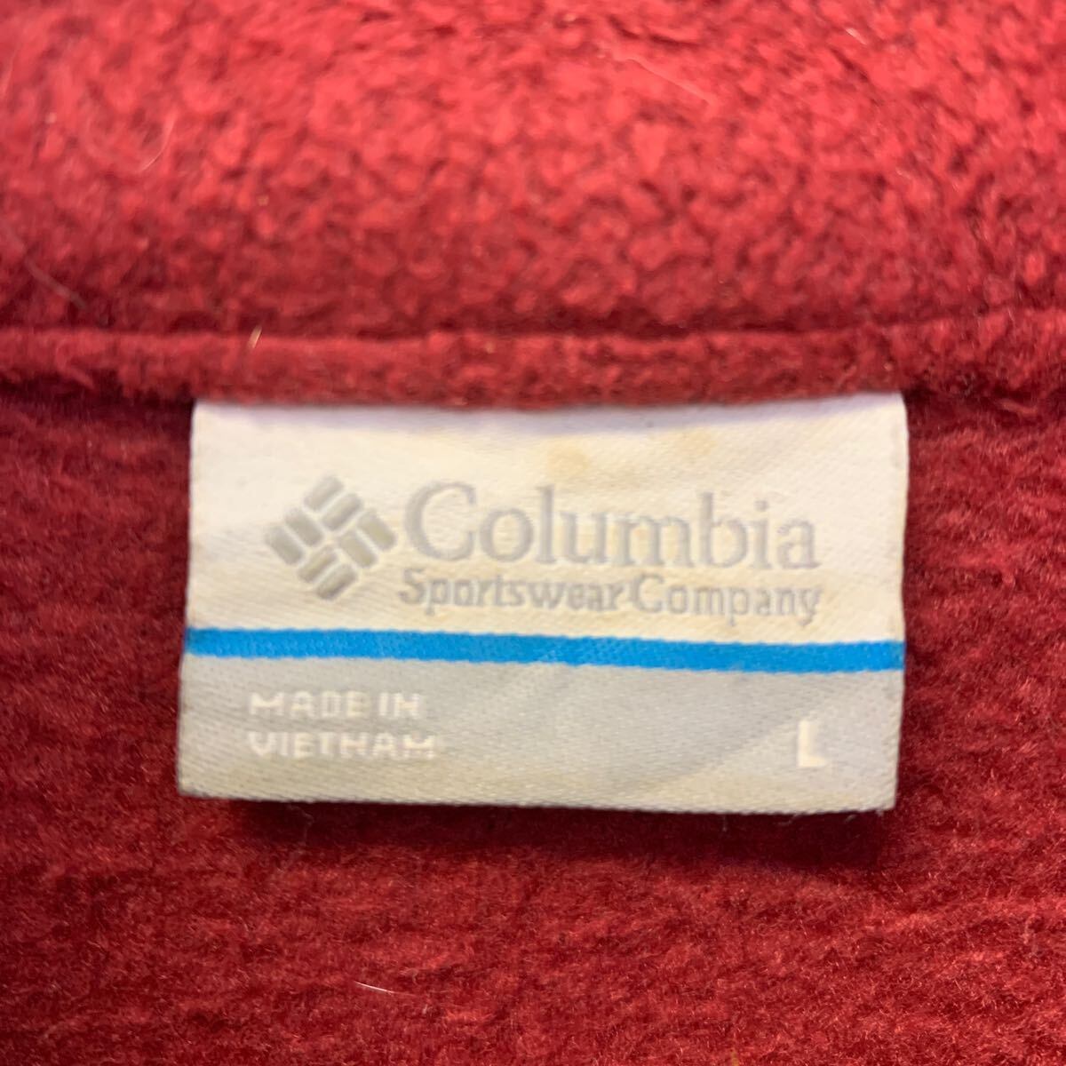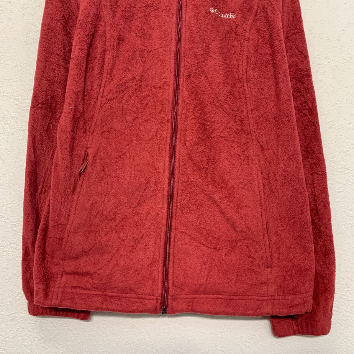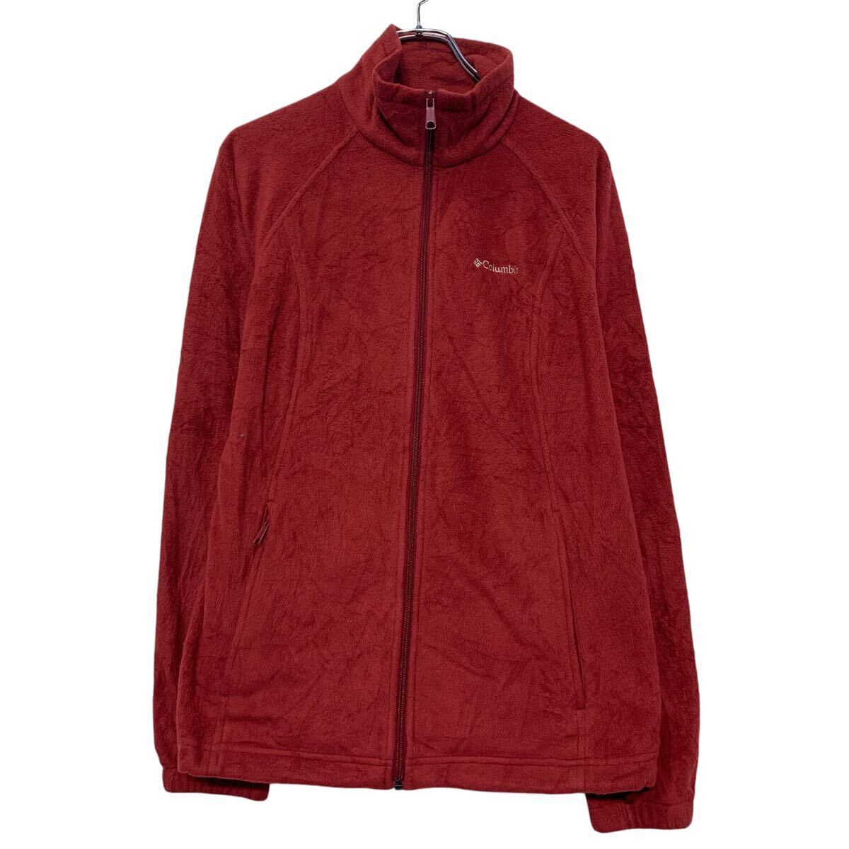 Columbia フリースジャケット コロンビア L レッド ジップアップ ワンポイント ロゴ ラグラン アウトドア 古着卸 アメリカ仕入 a610-8023