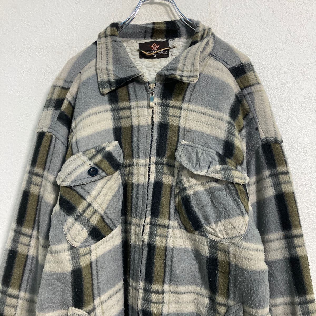 WANNANQING シャツジャケット M グレー ブラック チェック 裏ボア 古着卸 アメリカ仕入 a610-8049