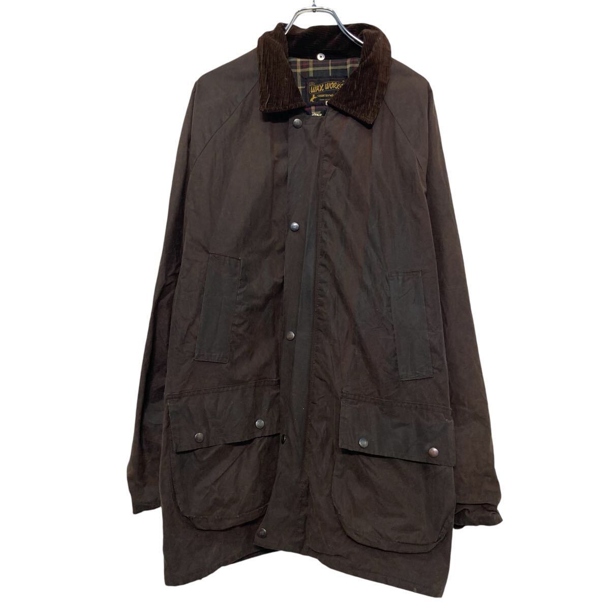 オイルドジャケット L ブラウン ジップアップ ラグラン 襟 コーデュロイ 切替 ポケット付き 古着卸 アメリカ仕入 a610-8170