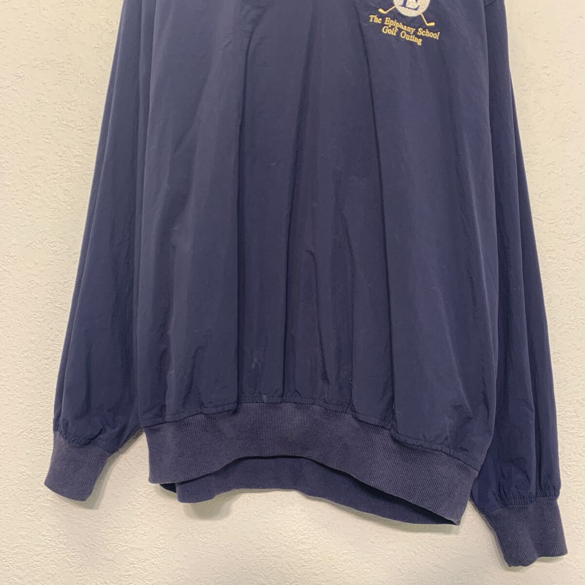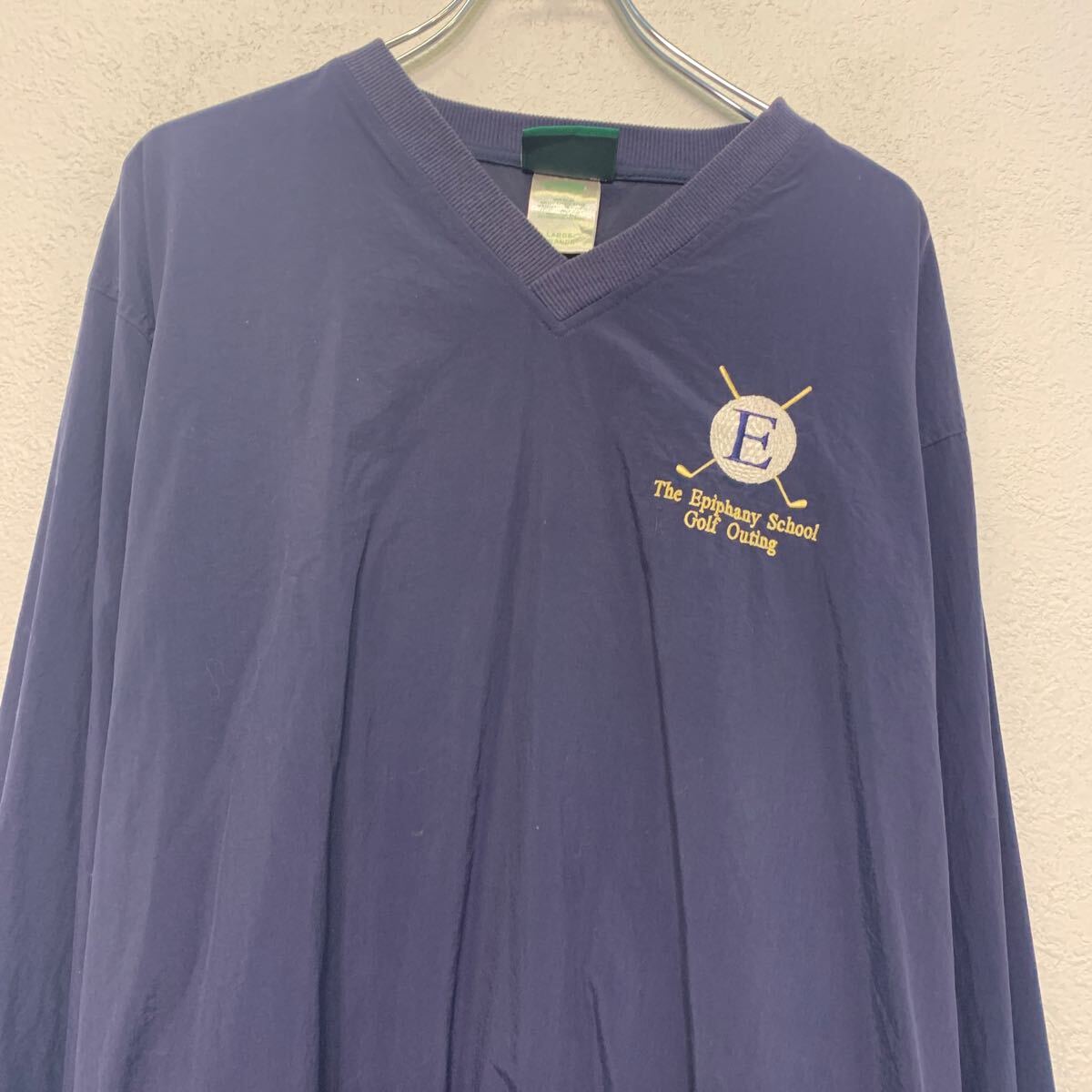 ナイロンプルオーバー L ネイビー Vネック バックプリント ワンポイント 刺繍 ゴルフウェア ピステ 薄手 古着卸 アメリカ仕入 a611-5122