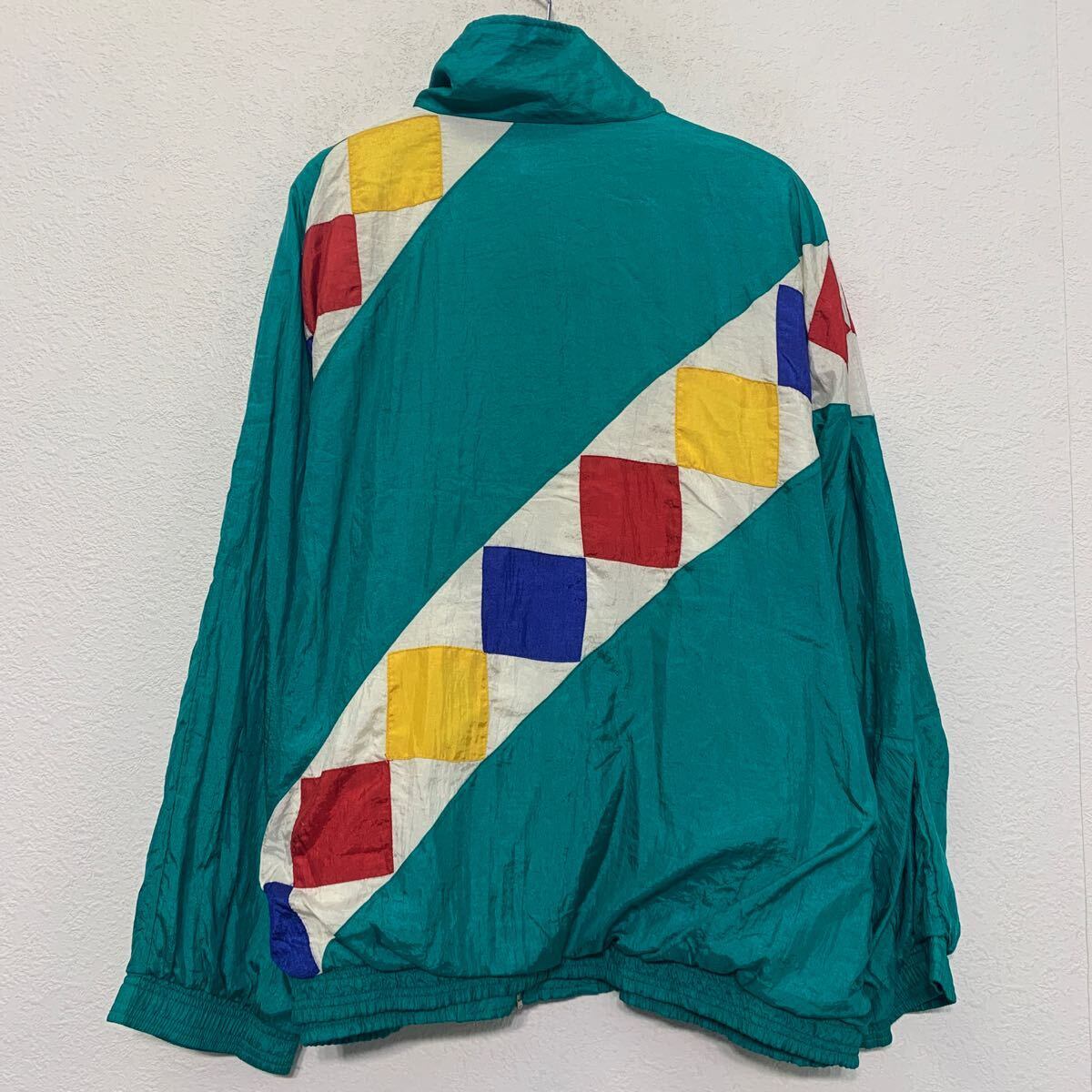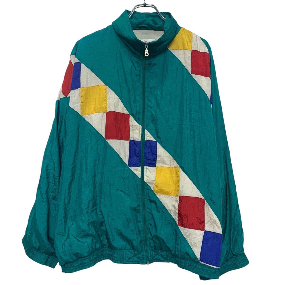 ナイロンジャケット 3XL グリーン マルチカラー ジップアップ ビッグサイズ ラグラン 柄 切替 ポケット 古着卸 アメリカ仕入 a611-5126