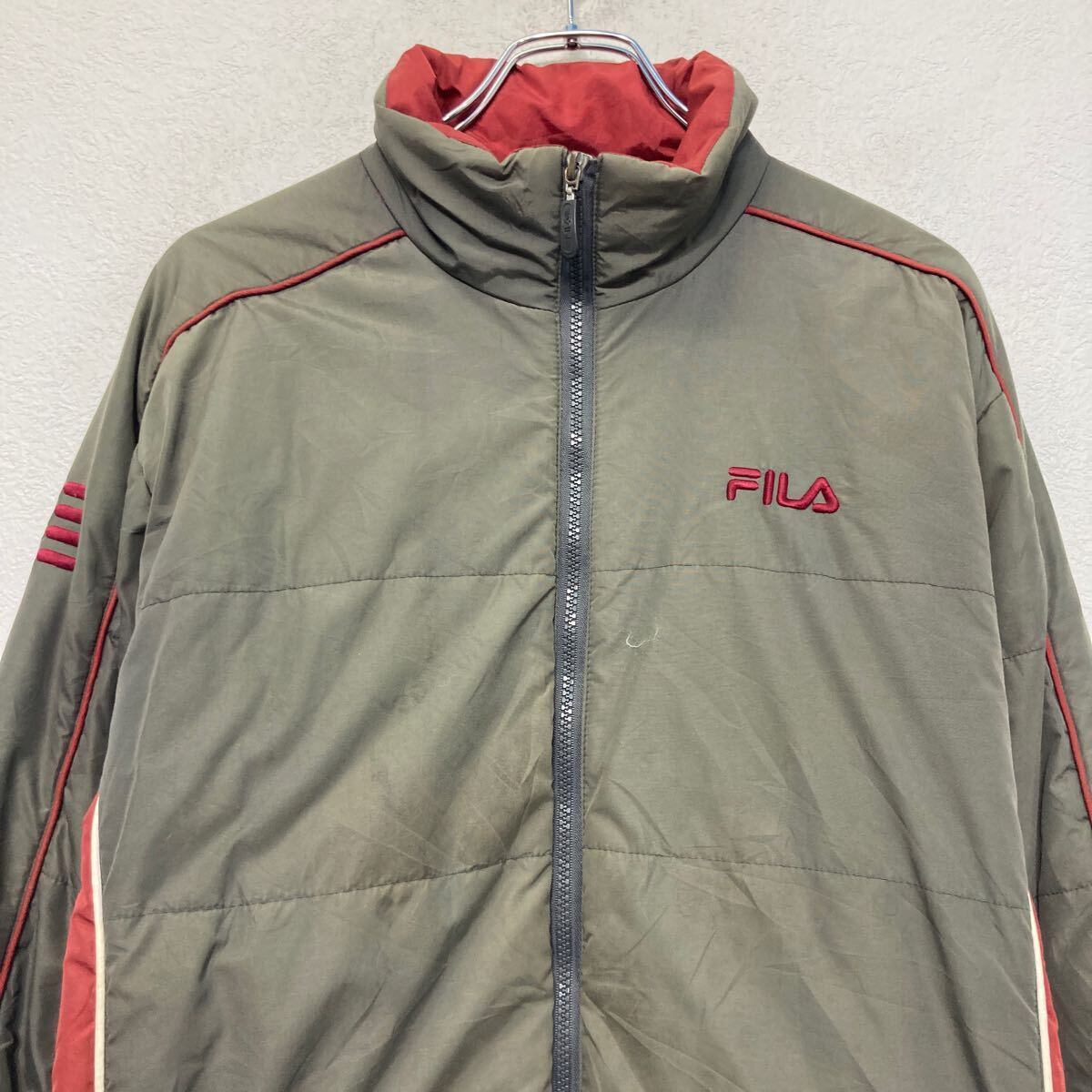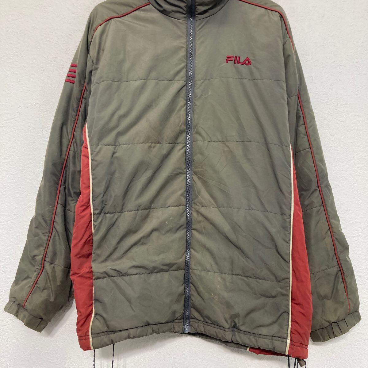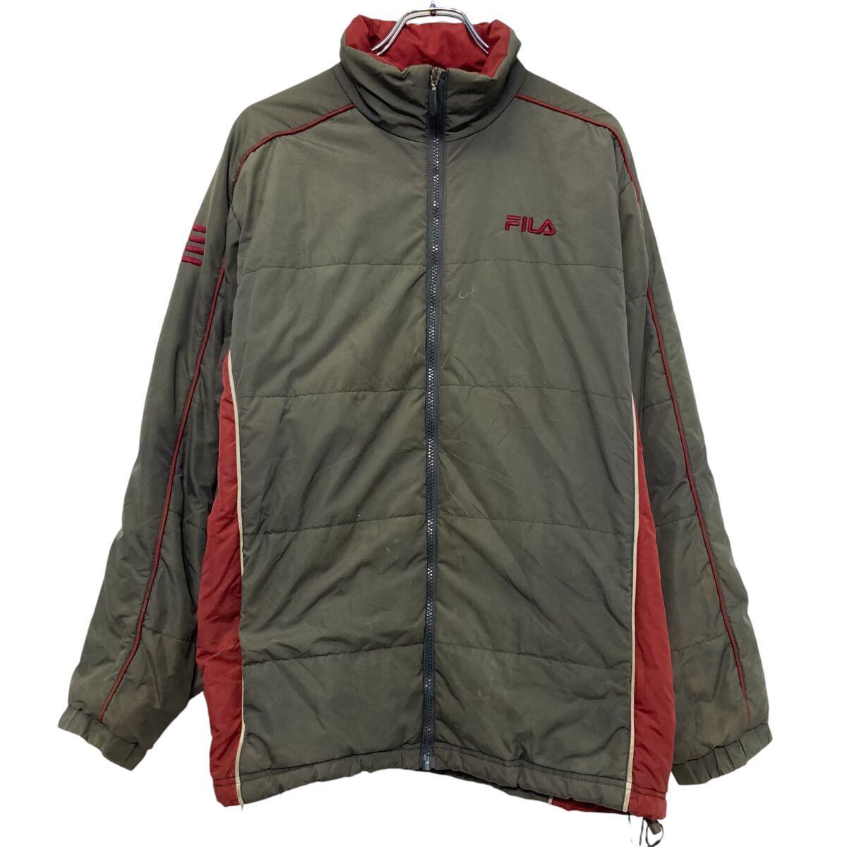 FILA ダウン中綿ジャケット XL ブラウン系 レッド フィラ ジップアップ ラグラン ワンポイント ロゴ ライン 古着卸 アメリカ仕入 a611-5132