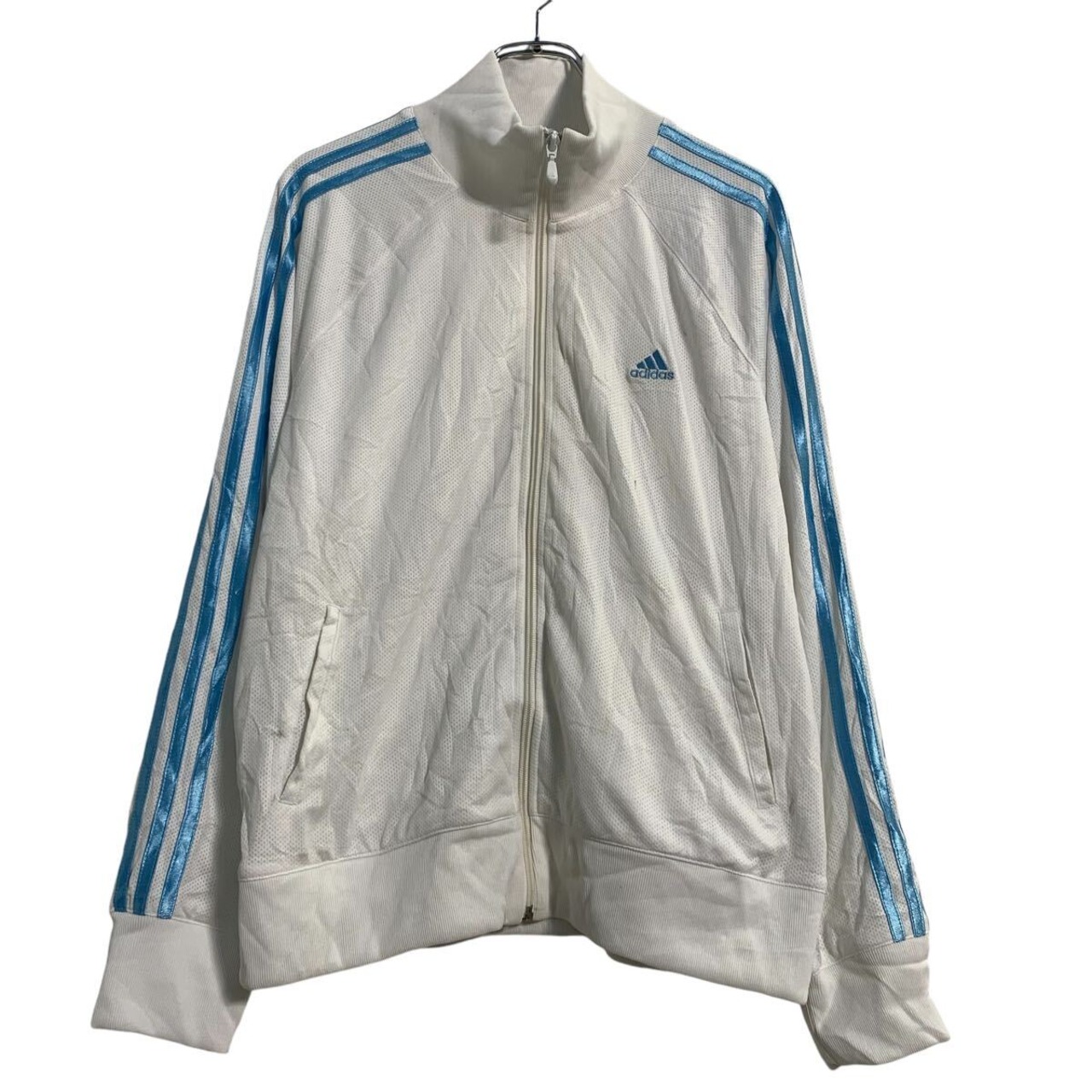 adidas ロゴジャージ XL ホワイト ライトブルー アディダス ジップアップ ビッグサイズ ラグラン 古着卸 アメリカ仕入 a611-5269