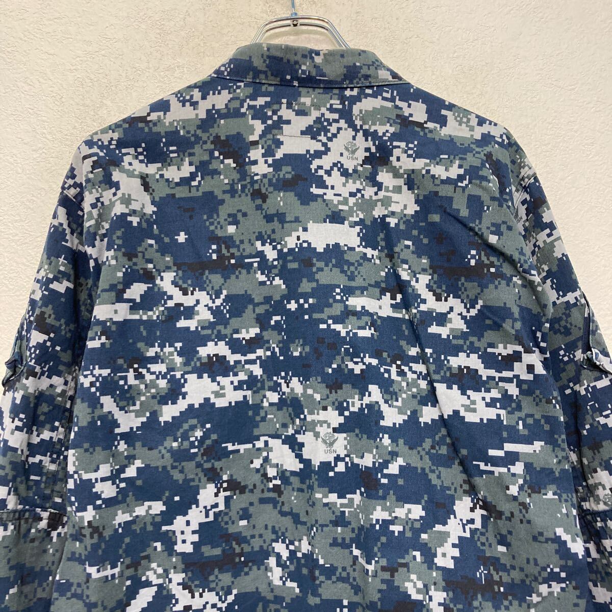 U.S Navy ミリタリージャケット L~ ブルー カモフラージュ デジタルカモ ボタン ユーエスネイビー 古着卸 アメリカ仕入 a611-5307