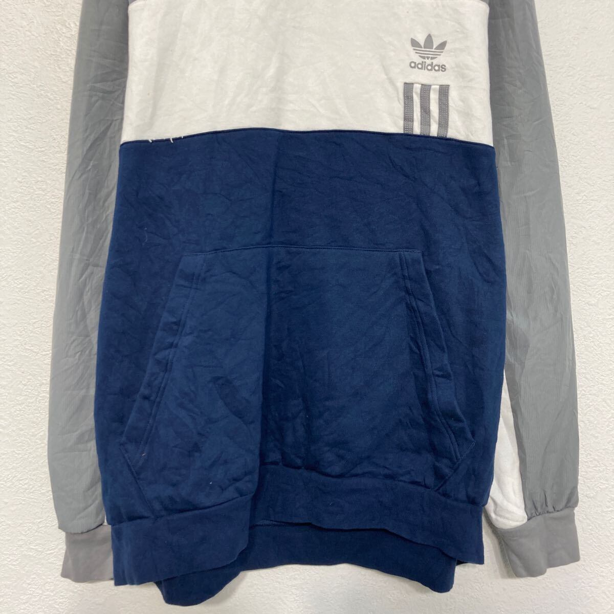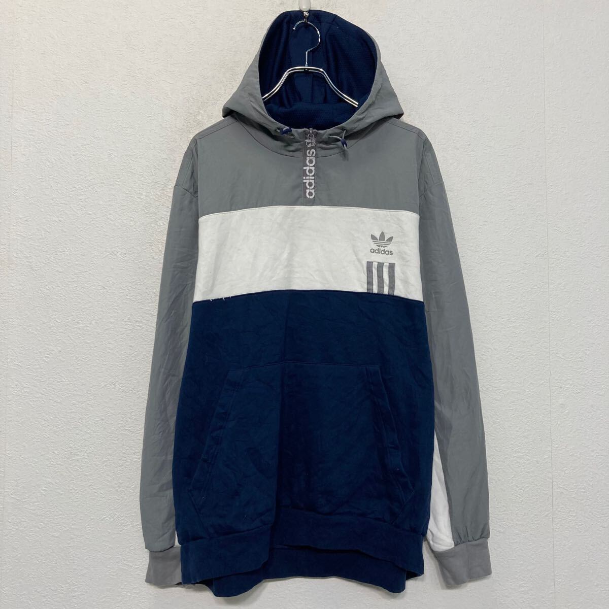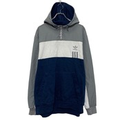 adidas ロゴスウェット パーカー アディダス 2XL グレー ホワイト ビッグサイズ ハーフジップ 古着卸 アメリカ仕入 a611-5349