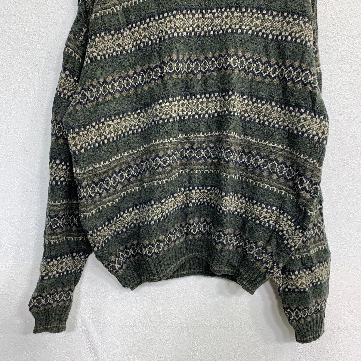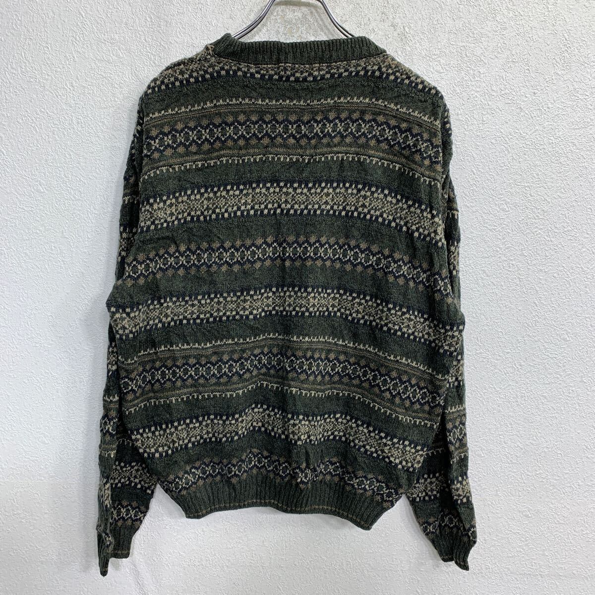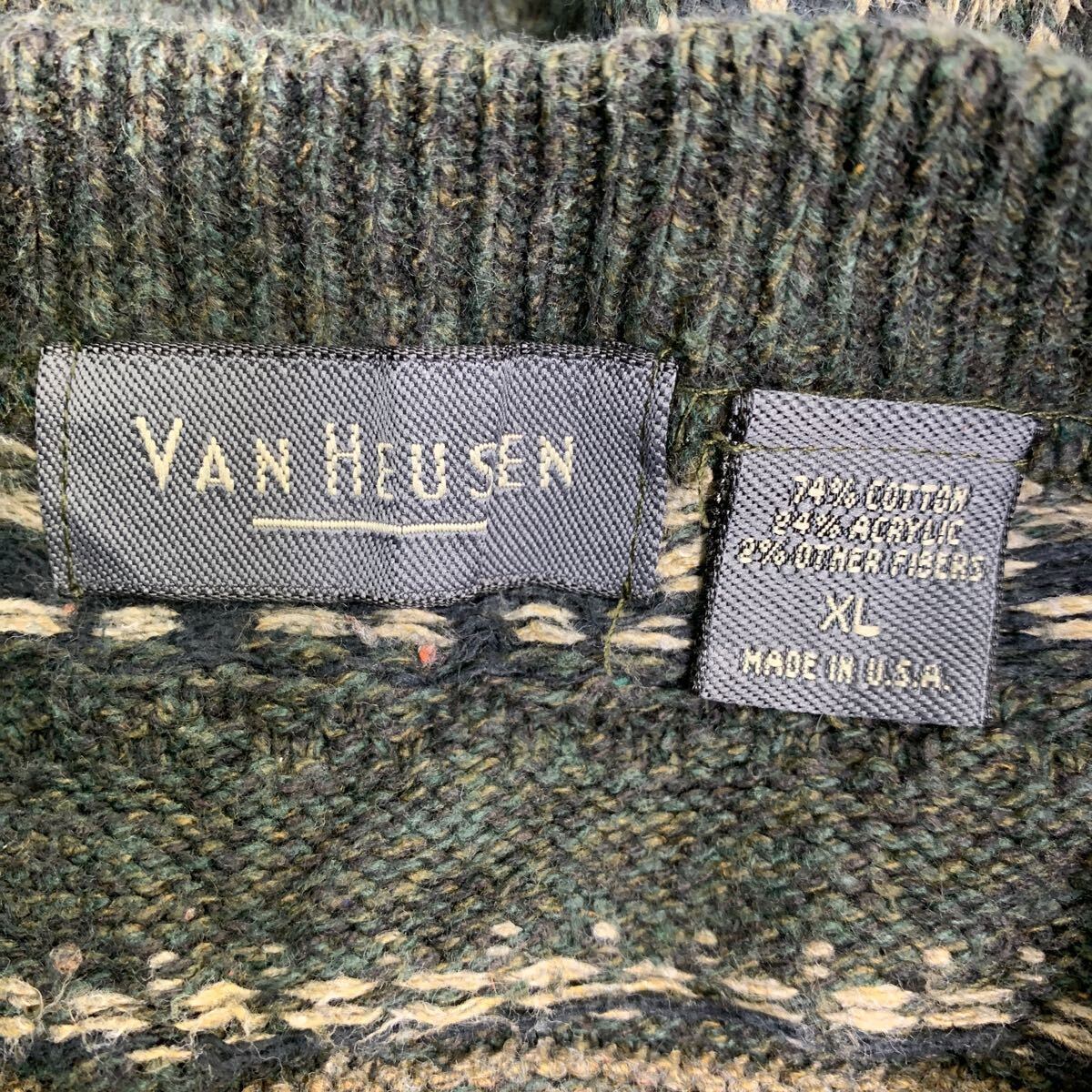 VANHEUSEN ニット セーター XLサイズ ヴァンヒューゼン 総柄 ダークグリーン USA製 古着卸 アメリカ仕入 t2411-3056
