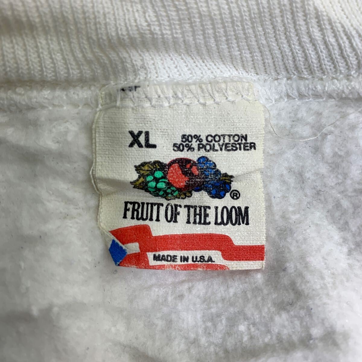 FRUIT OF THE LOOM プリントスウェット トレーナー XLサイズ フルーツオブザルーム ホワイト USA製 古着卸 アメリカ仕入 t2411-3093