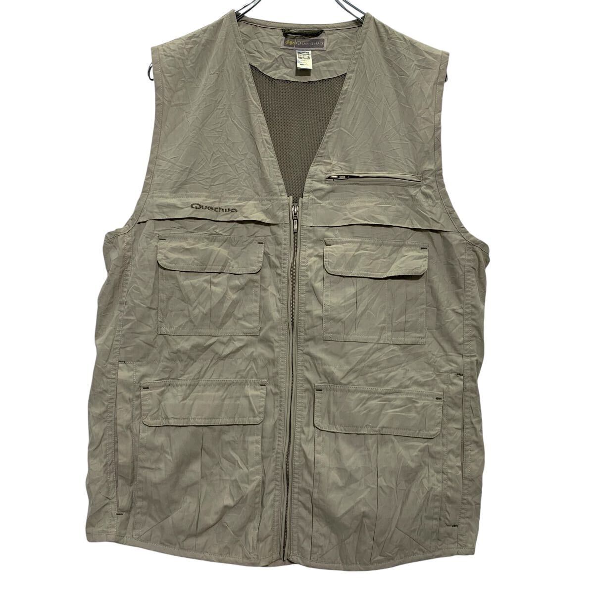 ハンティングベスト S ベージュ ジップアップ ワンポイント ロゴ アウトドア 古着卸 アメリカ仕入 a611-5454