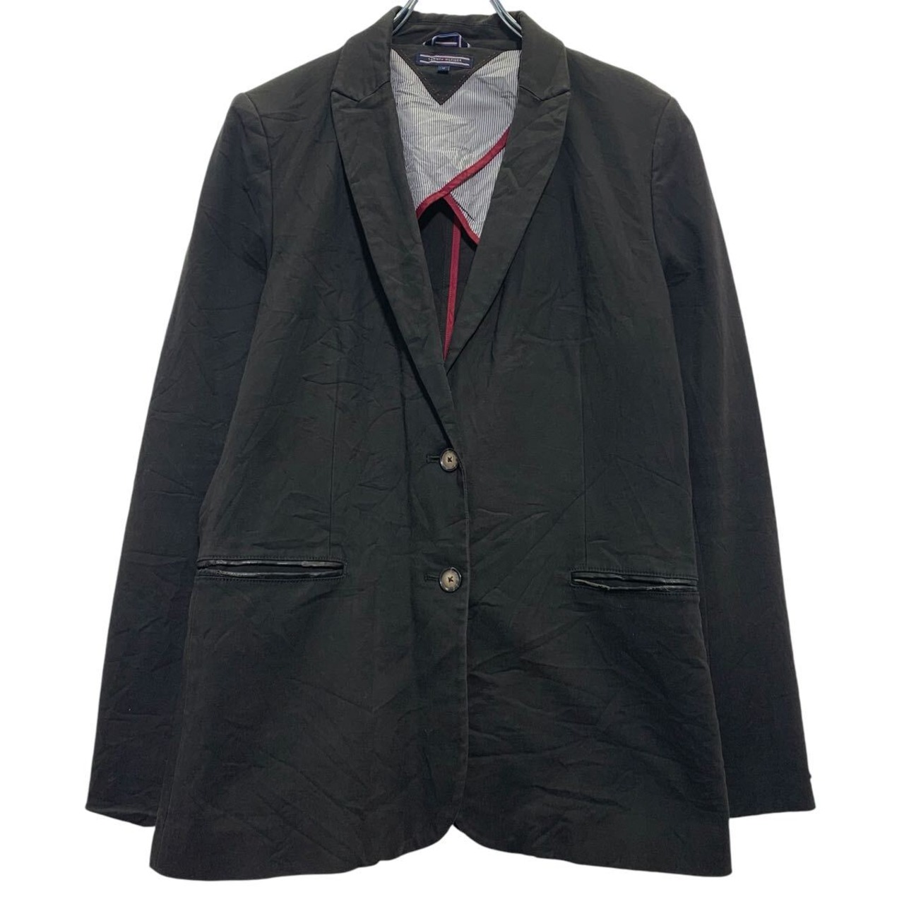 TOMMY HILFIGER テーラードジャケット L 程 ブラック トミーヒルフィガー ボタン 秋冬 アウター 古着卸 アメリカ仕入 a611-5498