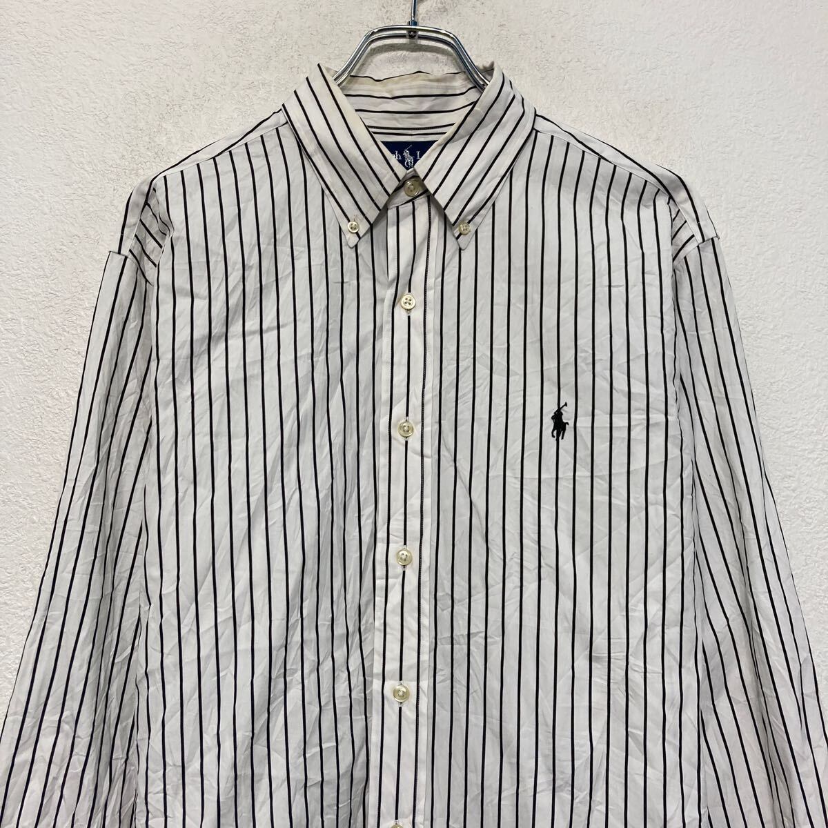 Ralph Lauren 長袖 ストライプシャツ L~ ホワイト ブラック ボタンダウン ラルフローレン 古着卸 アメリカ仕入 a611-5527