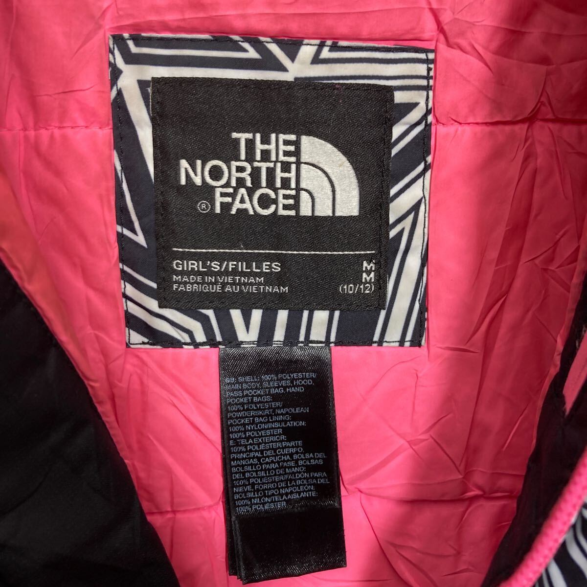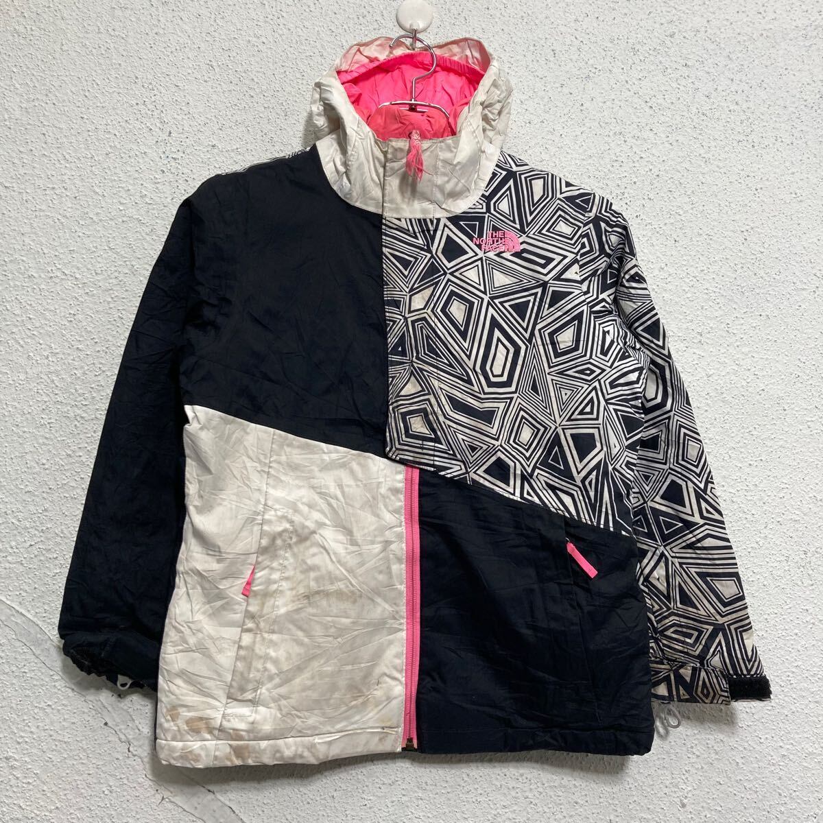 The north face ナイロンジャケット ザノースフェイス キッズ M ブラック ホワイト ピンク アウトドア 古着卸 アメリカ仕入 a611-5606