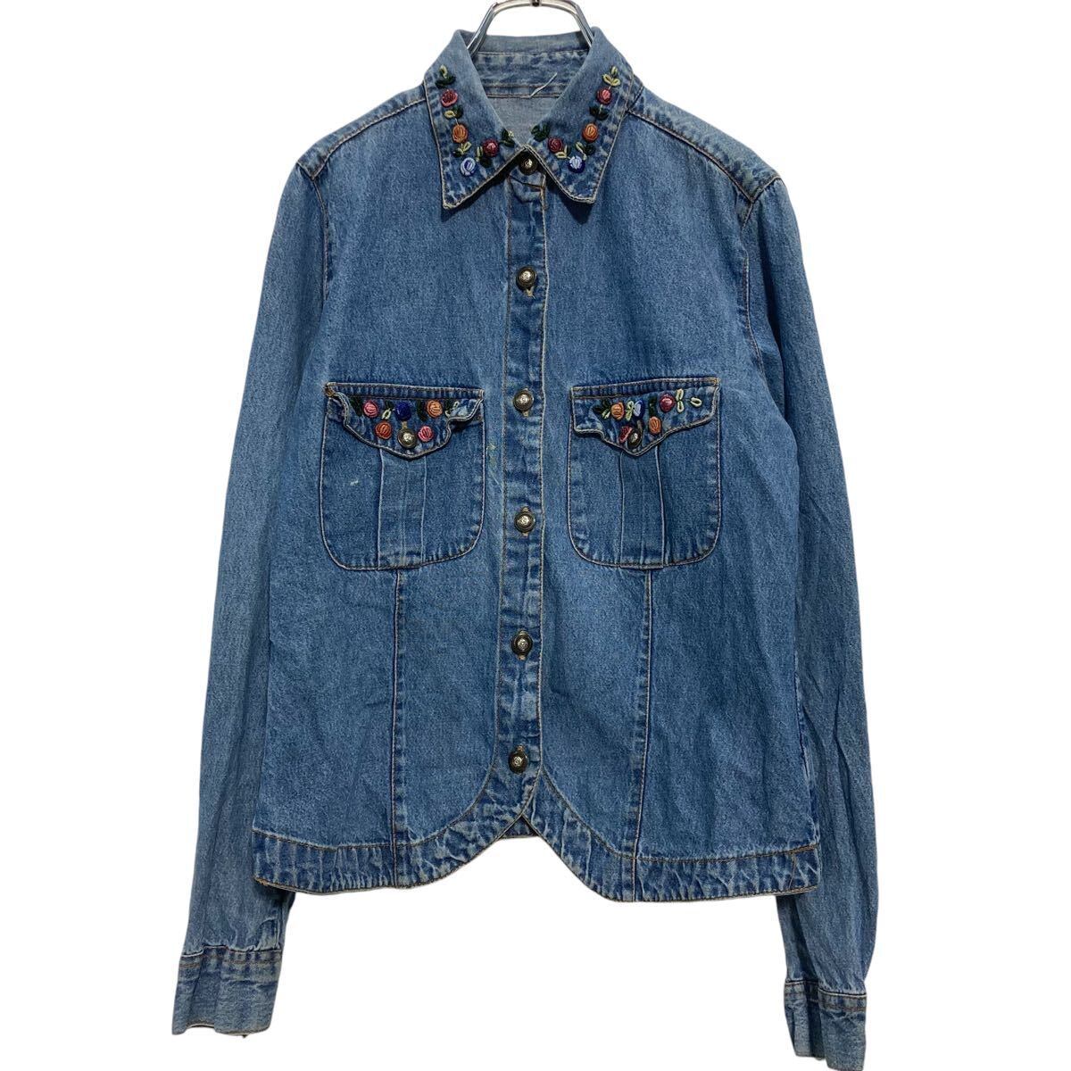 デニムジャケット レディース XS〜 ブルー 花 ダックボタン 薄手 古着卸 アメリカ仕入 a611-5729