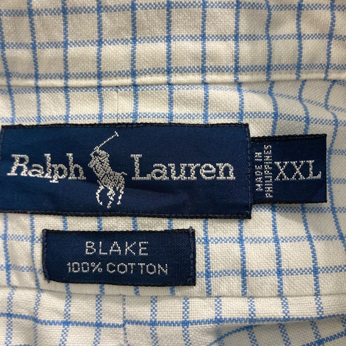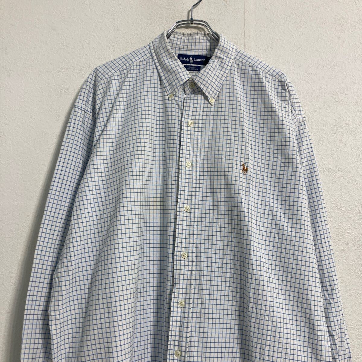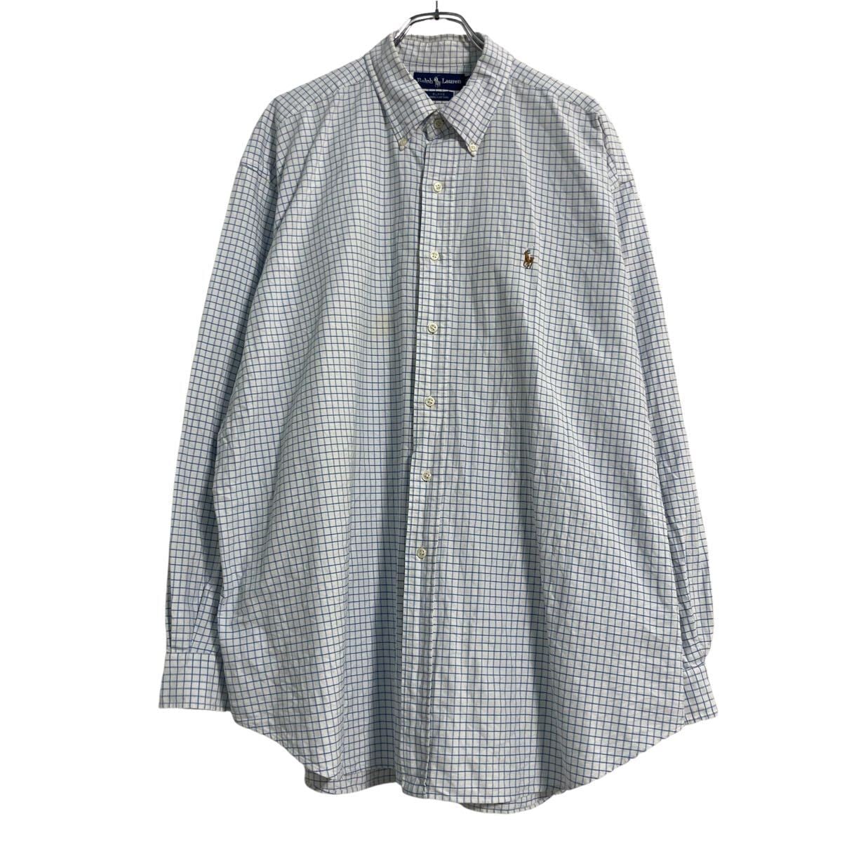 RALPH LAUREN 長袖 チェックシャツ 2XL ホワイト ブルラルフローレン ボタンダウン ビッグサイズ 古着卸 アメリカ仕入 a611-5888