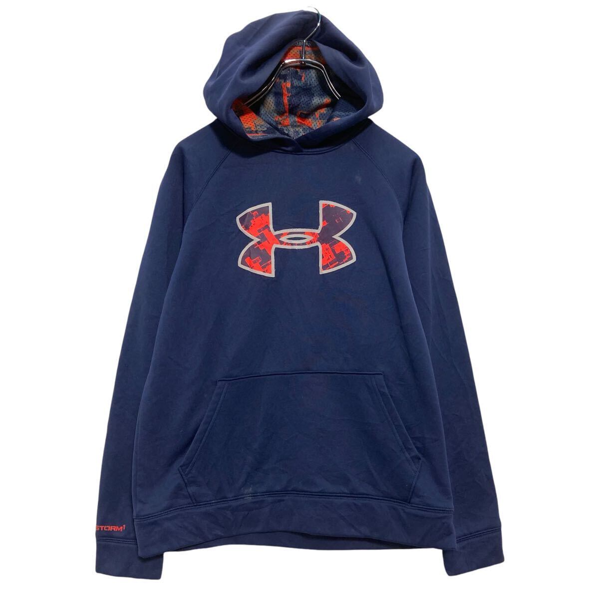 UNDER ARMOUR プリント ジャージ パーカー キッズ L 150〜 ネイビー アンダーアーマー プルオーバー 古着卸 アメリカ仕入 a611-5969