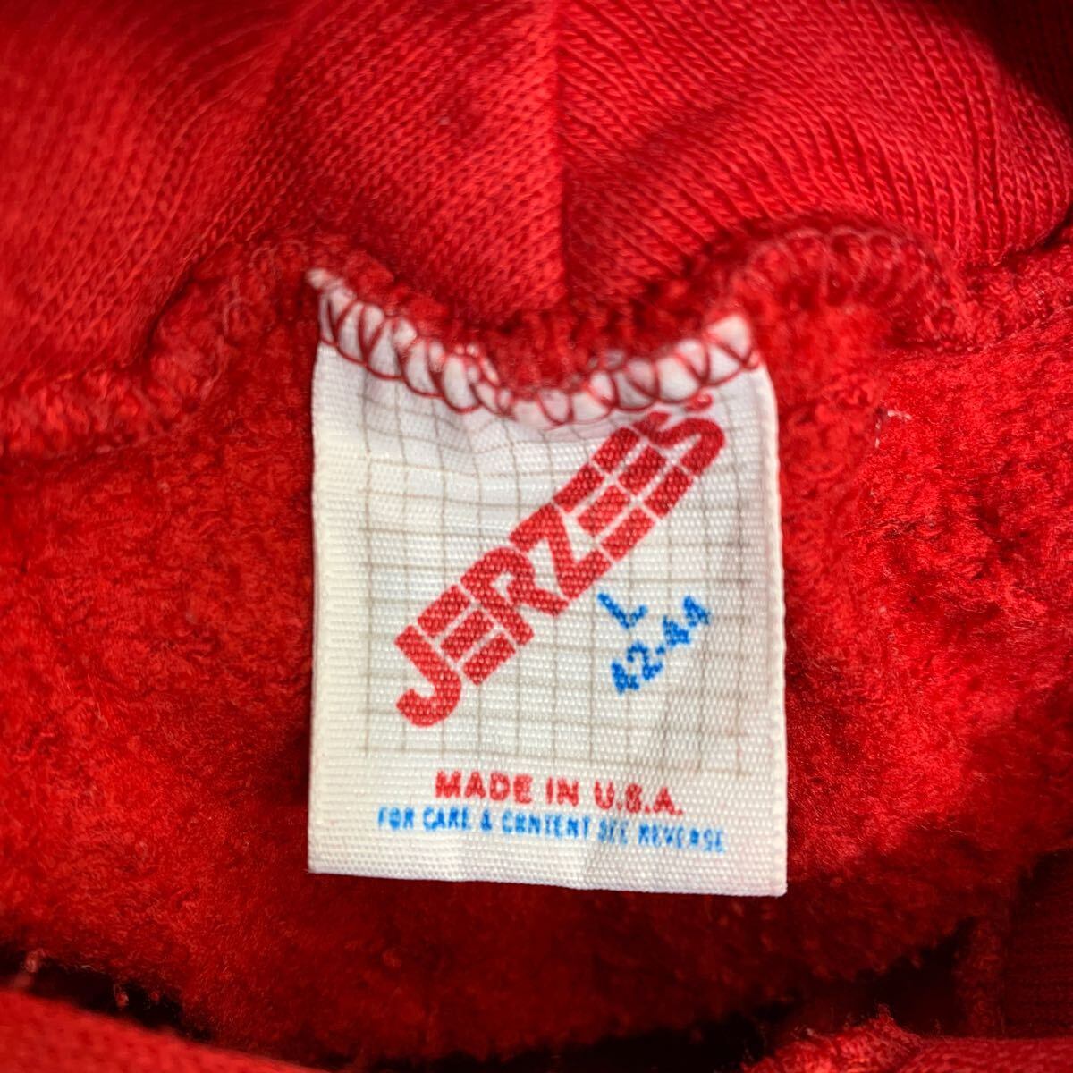 JERZEES ロゴ スウェット パーカー Lサイズ ジャージーズ レッド USA製 古着卸 アメリカ仕入 t2411-3363