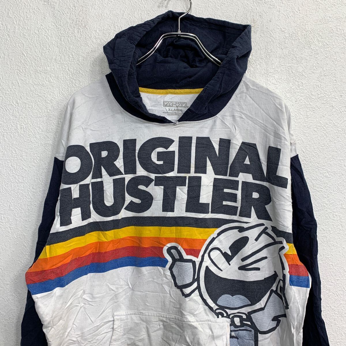 PAC-MAN プリント スウェット パーカー XLサイズ パックマン キャラクター ホワイト ネイビー 古着卸 アメリカ仕入 t2411-3417