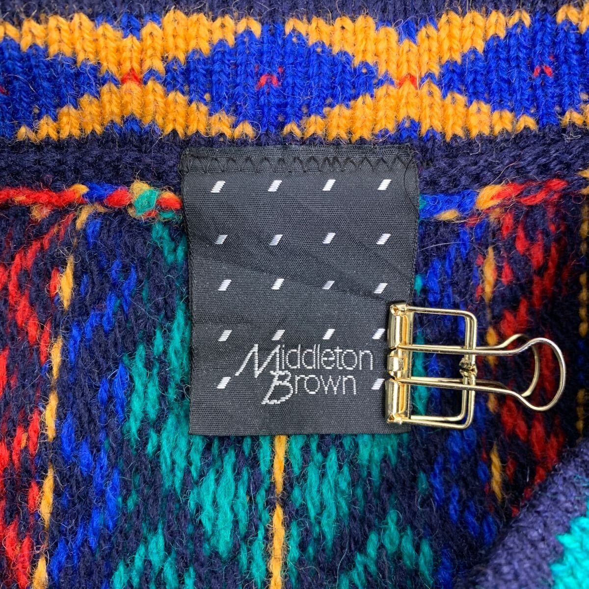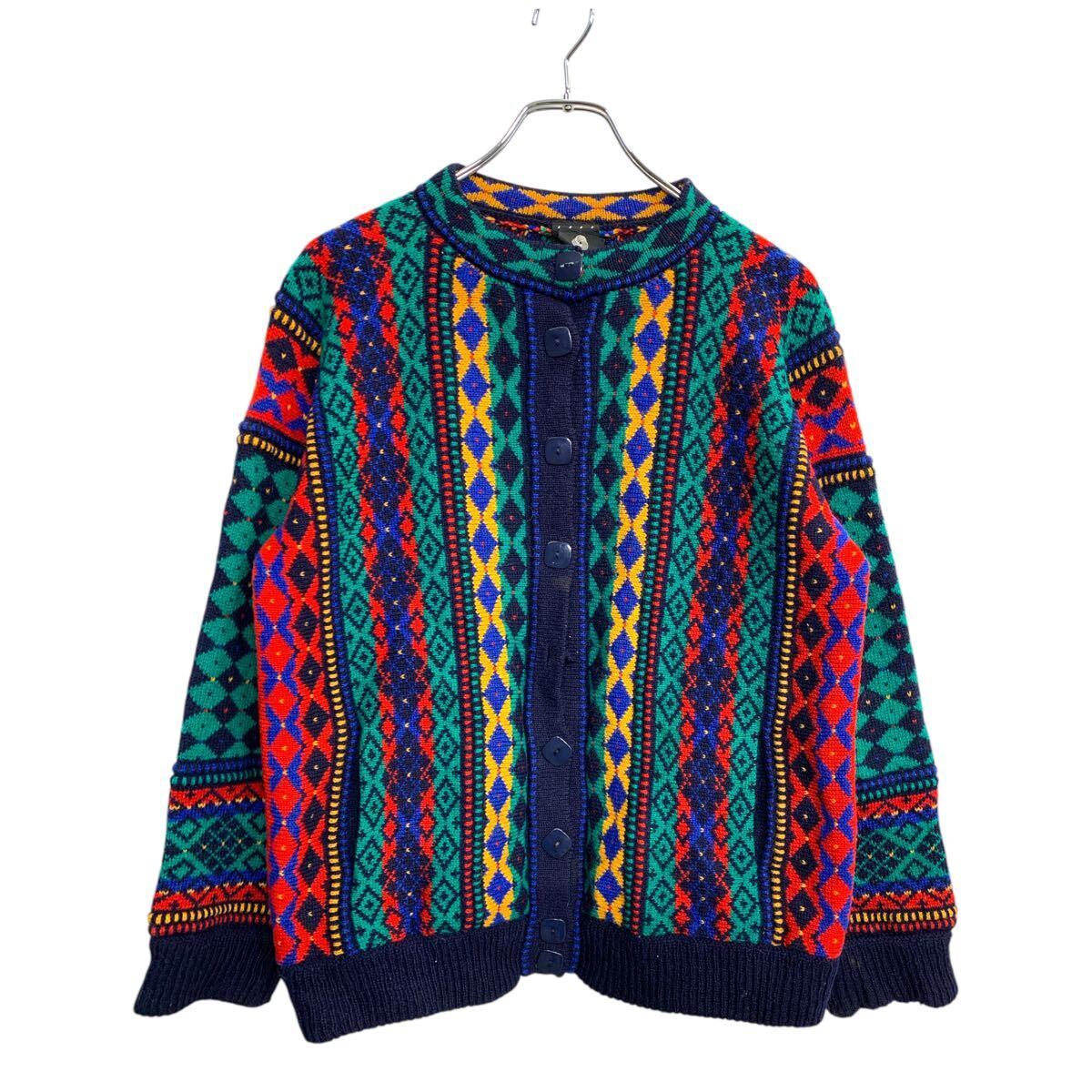 Middleton Brown ニット カーディガン M〜Lサイズくらい レディース 総柄 マルチカラー ウール 古着卸 アメリカ仕入 t2411-3441