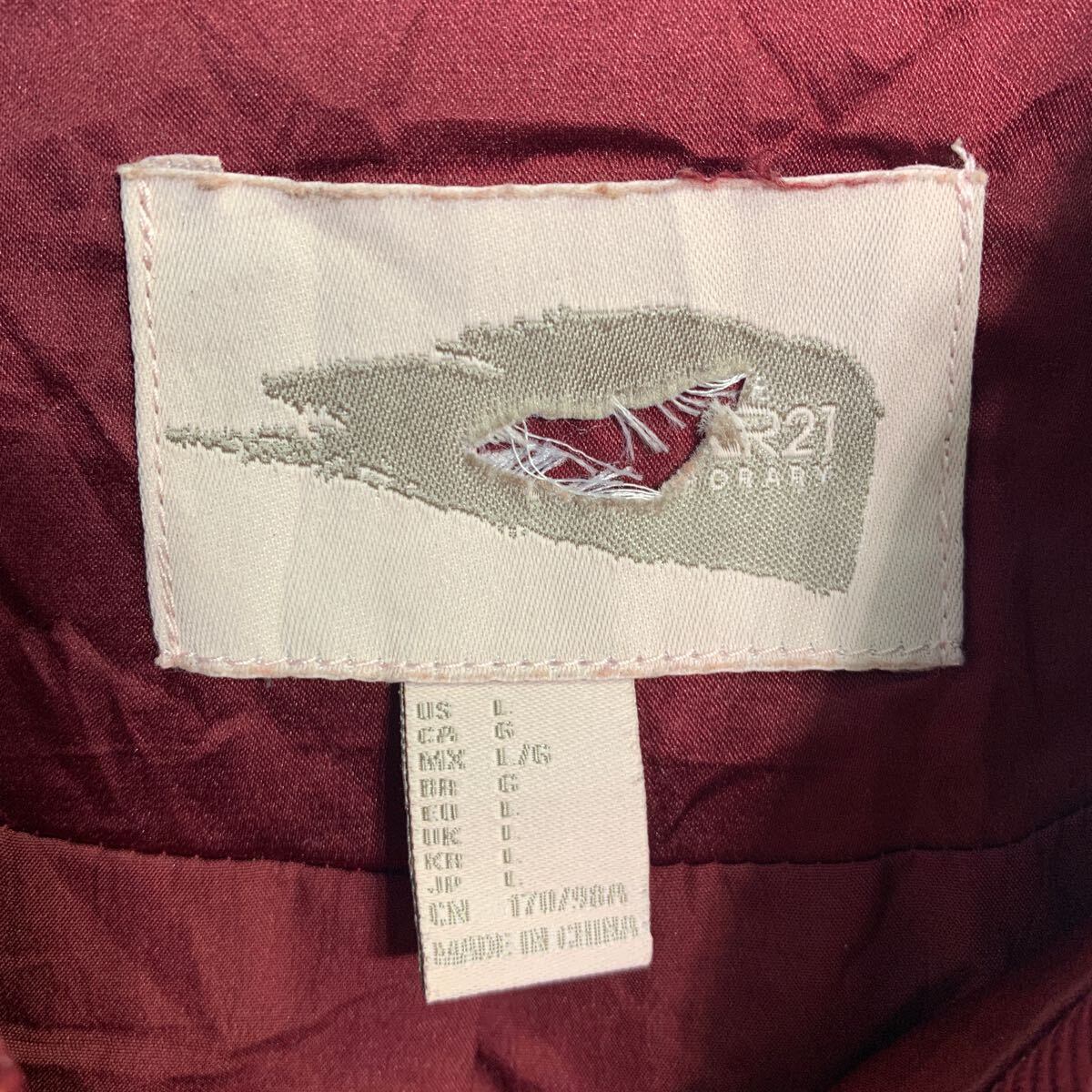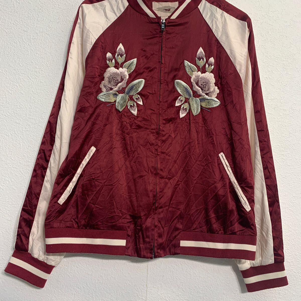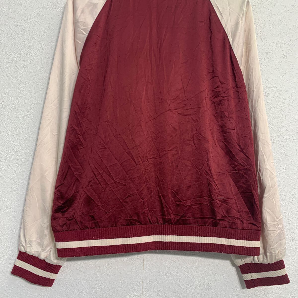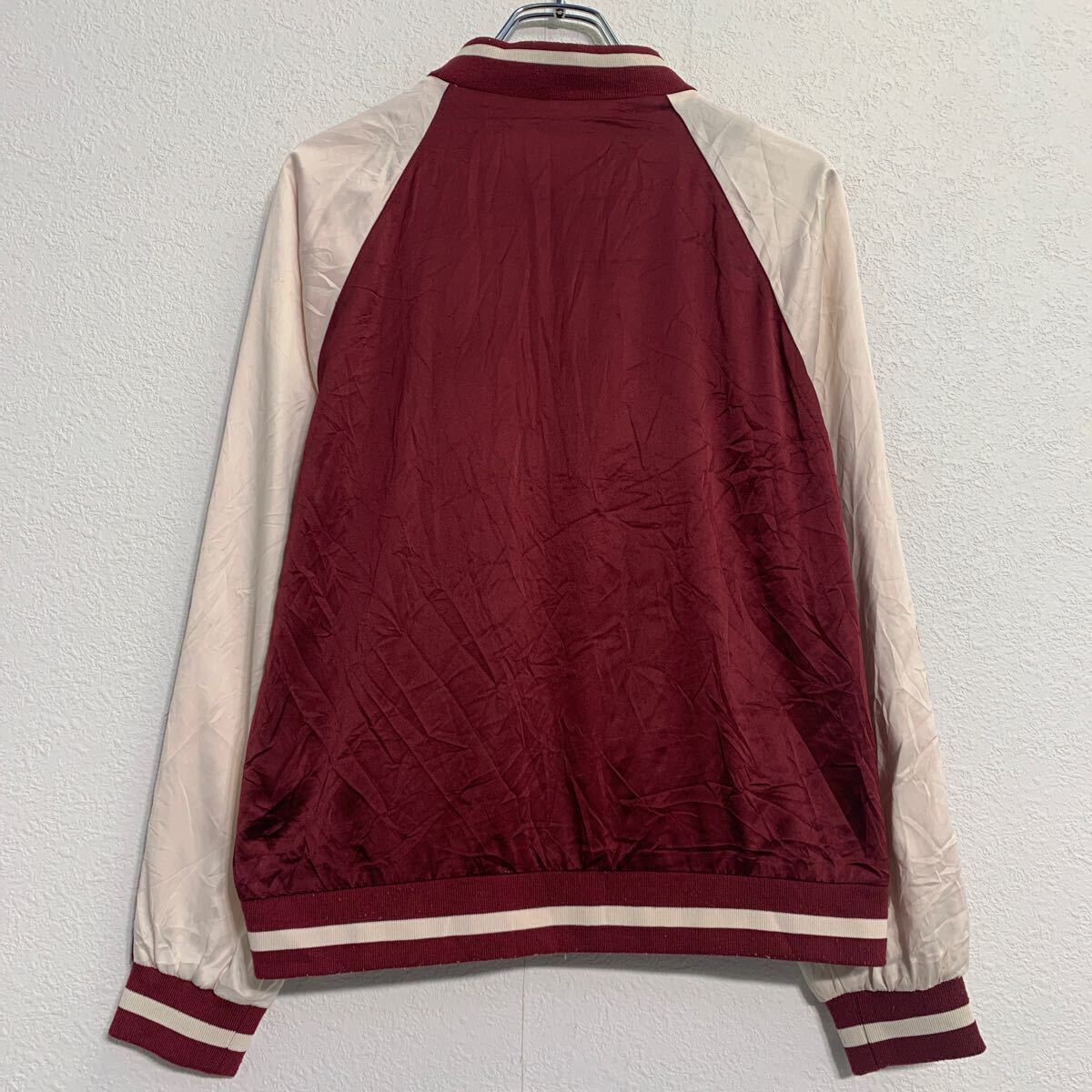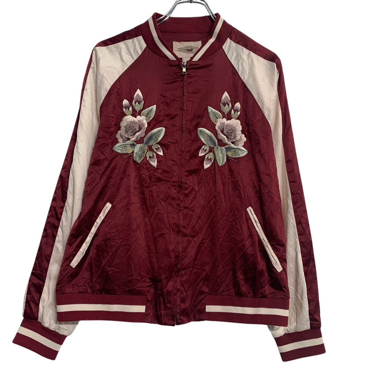 スカジャン ジャケット L エンジ ピンク ジップアップ ライン 花柄 刺繍 ライン 切替 アウター 薄手 古着卸 アメリカ仕入 a611-6180