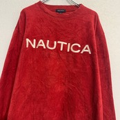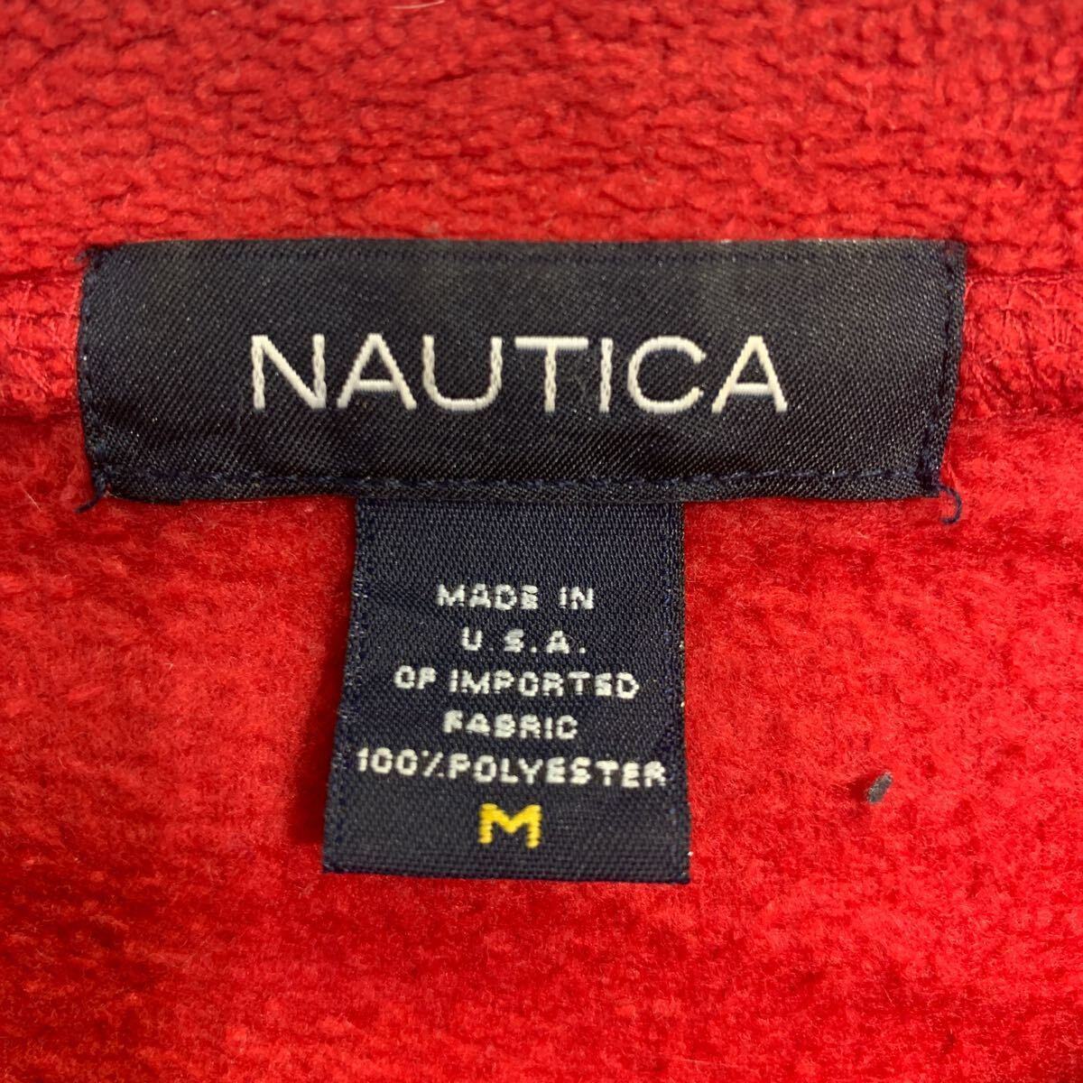 NAUTICA フリース トレーナー M レッド ホワイト ノーティカ プルオーバー USA製 アメリカ製 ロゴ 古着卸 アメリカ仕入 a611-6295