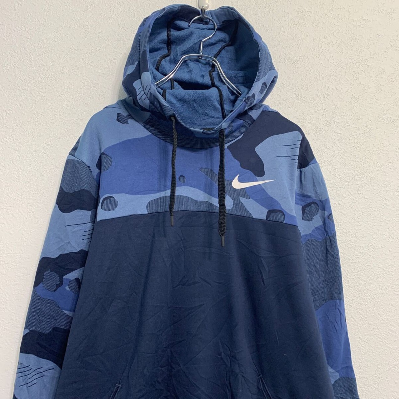 NIKE フリースパーカー L ブルー ネイビー ナイキ プルオーバー ワンポイント ロゴ スポーティー 古着卸 アメリカ仕入 a611-6356