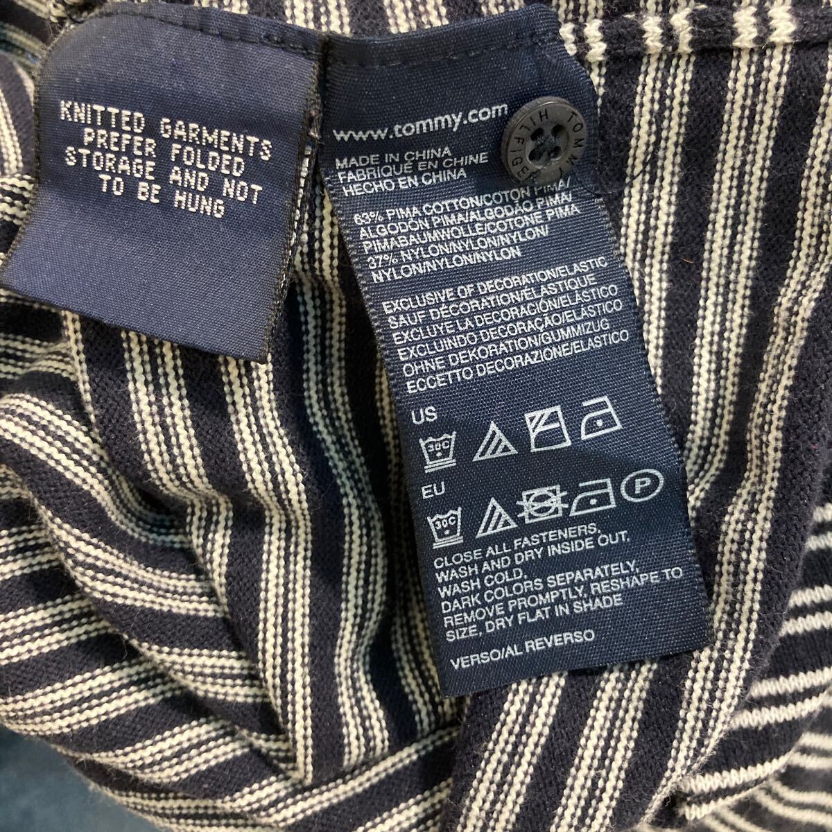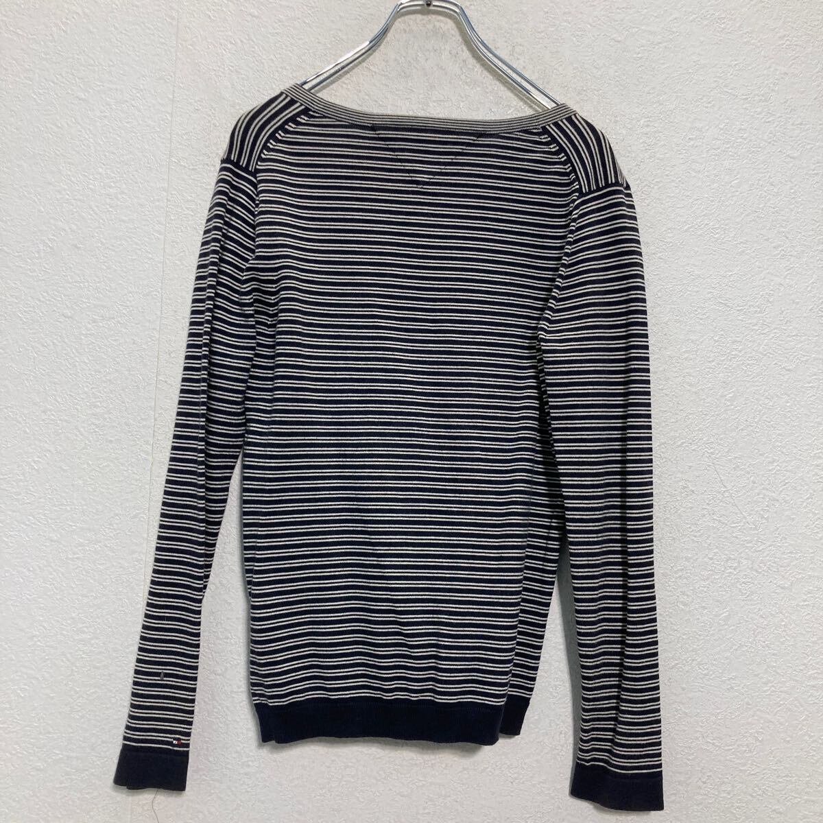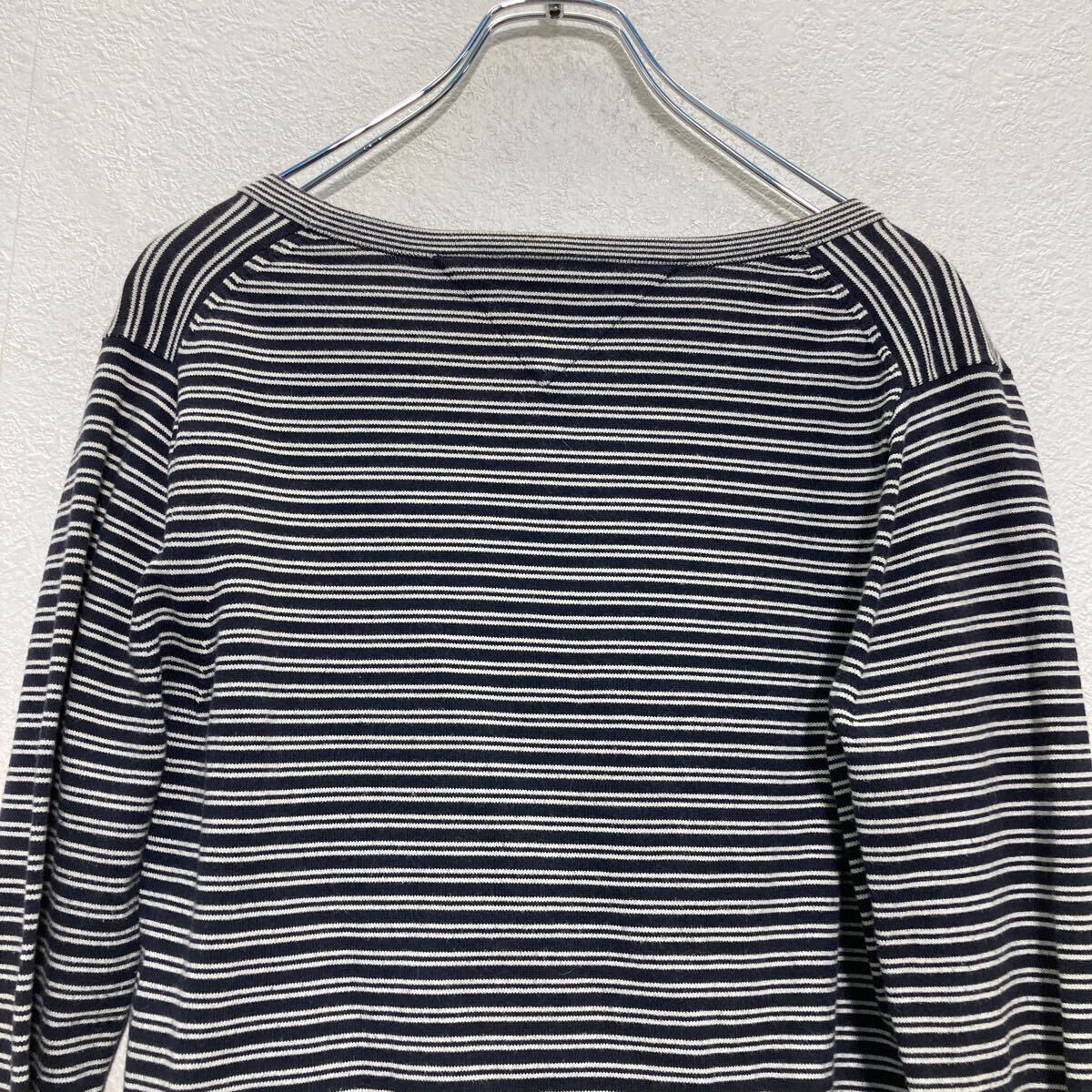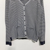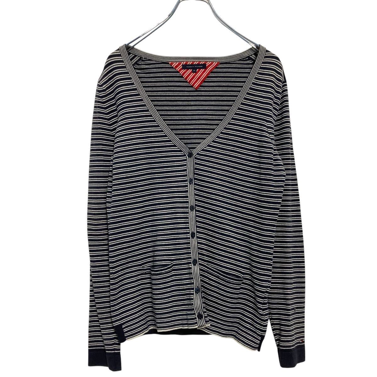 TOMMY HILFIGER コットン混紡 ニット セーター カーディガン レディース M ネイビー ホワイト ボーダー 古着卸 アメリカ仕入 a611-6366