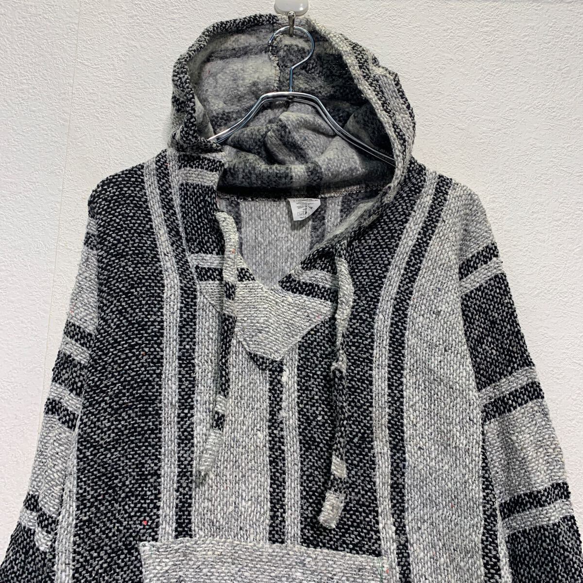メキシカンパーカー XL ブラック グレー プルオーバー ビッグサイズ Vネック ヒッピー 民族 古着卸 アメリカ仕入 a611-6414