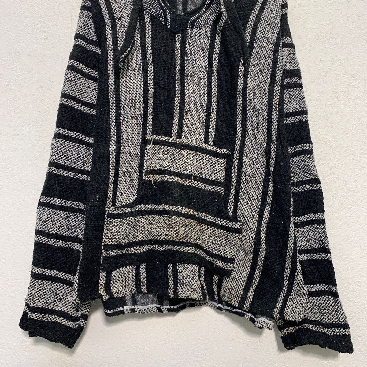 メキシカンパーカー XL ブラック ホワイト プルオーバー ビッグサイズ Vネック メキシコ製 ヒッピー 民族 古着卸 アメリカ仕入 a611-6417