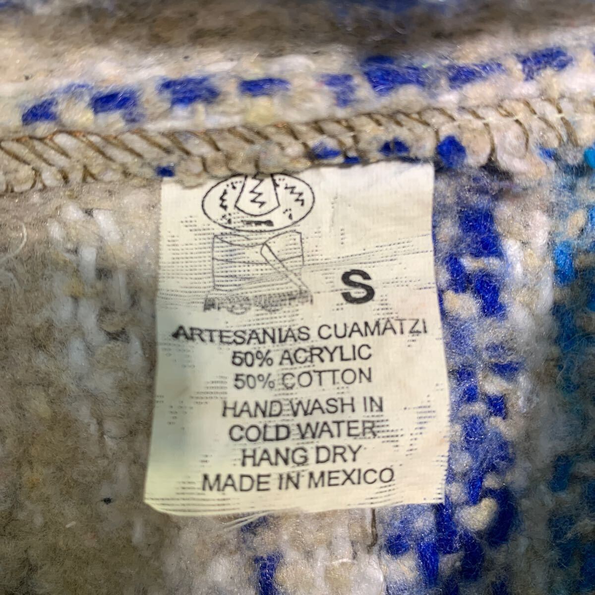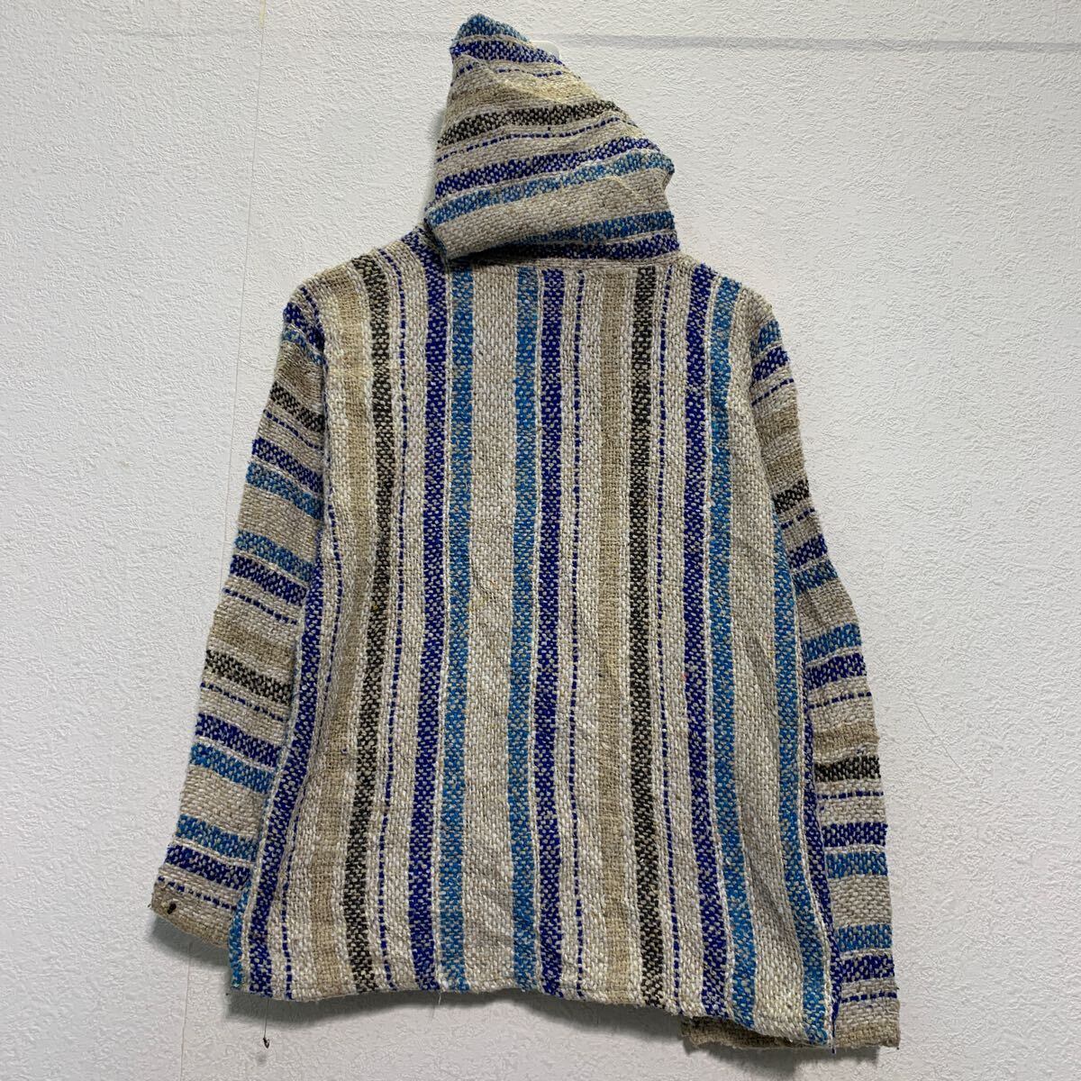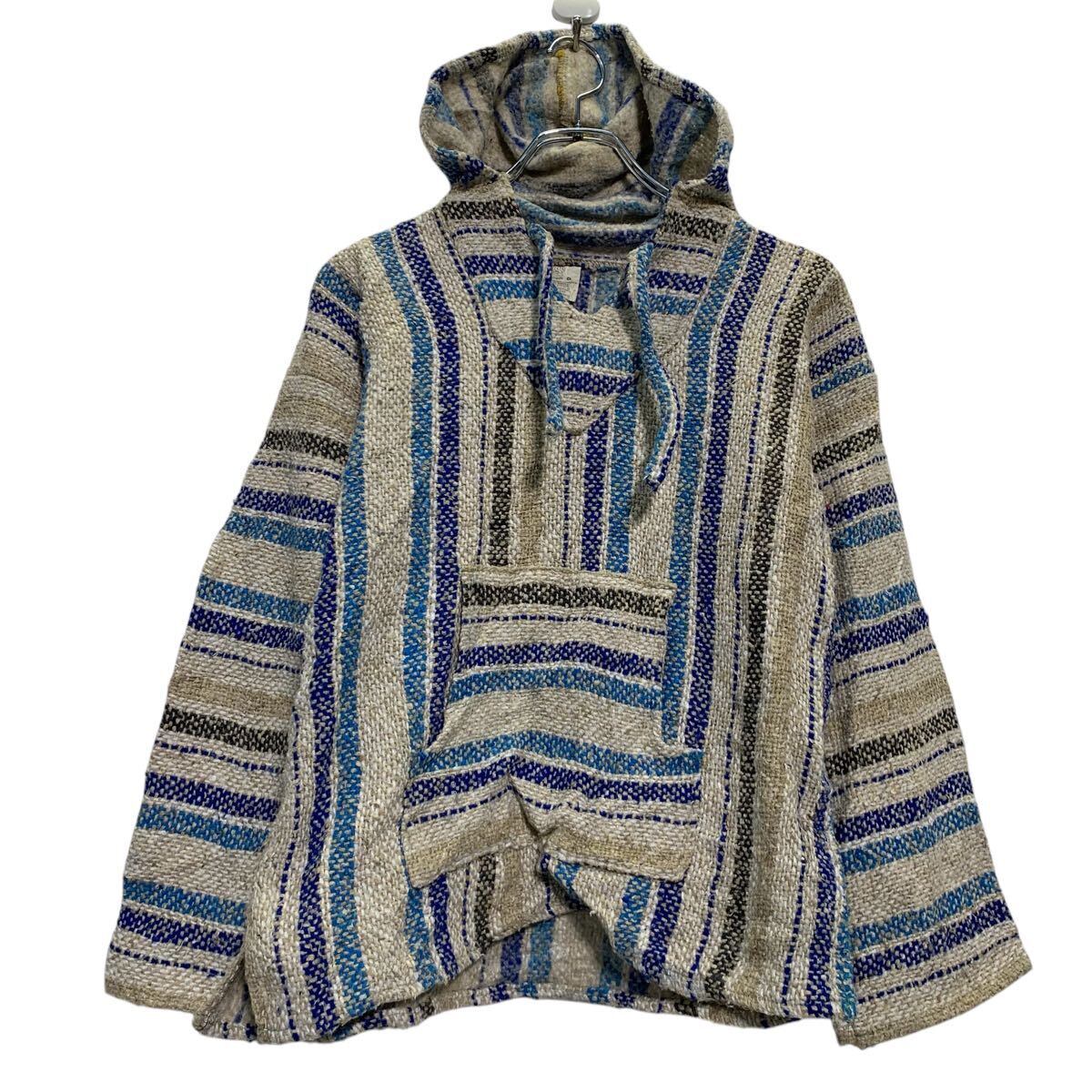 メキシカンパーカー S ブルー ライトブルー ホワイト プルオーバー メキシコ製 Vネック ヒッピー 民族 古着卸 アメリカ仕入 a611-6425