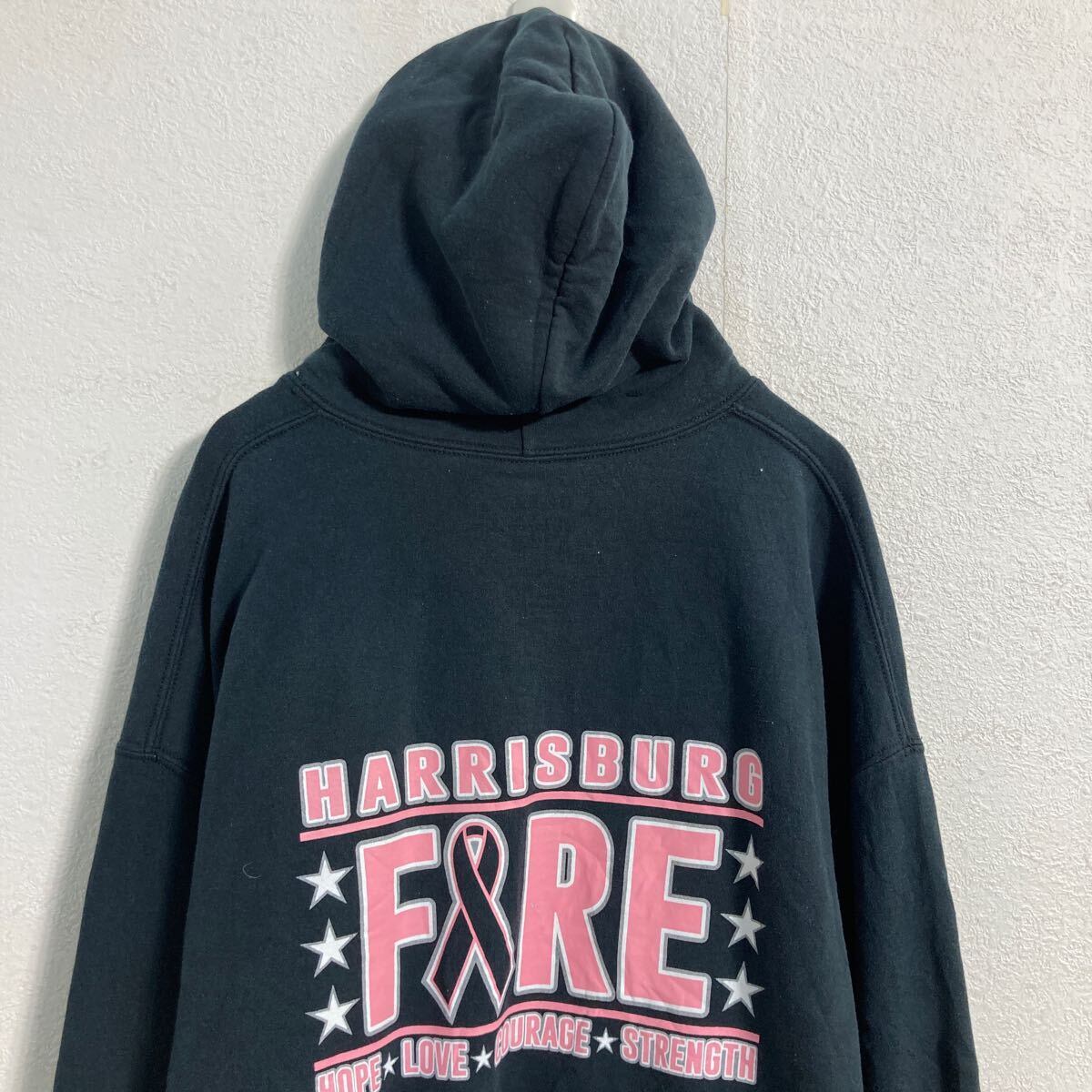 GILDAN プリントスウェット パーカー レディース XL ブラック ピンク ギルダン 裏起毛 ビッグサイズ 古着卸 アメリカ仕入 a611-6438