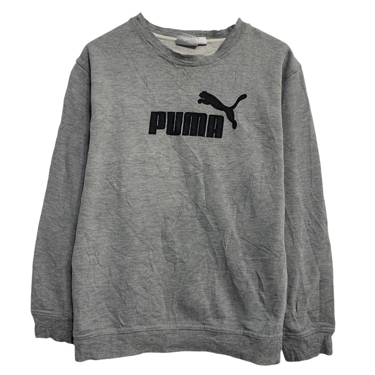 PUMA ロゴスウェット トレーナー キッズ 150〜 グレー ブラック プーマ プルオーバー スポーティー 古着卸 アメリカ仕入 a611-6591