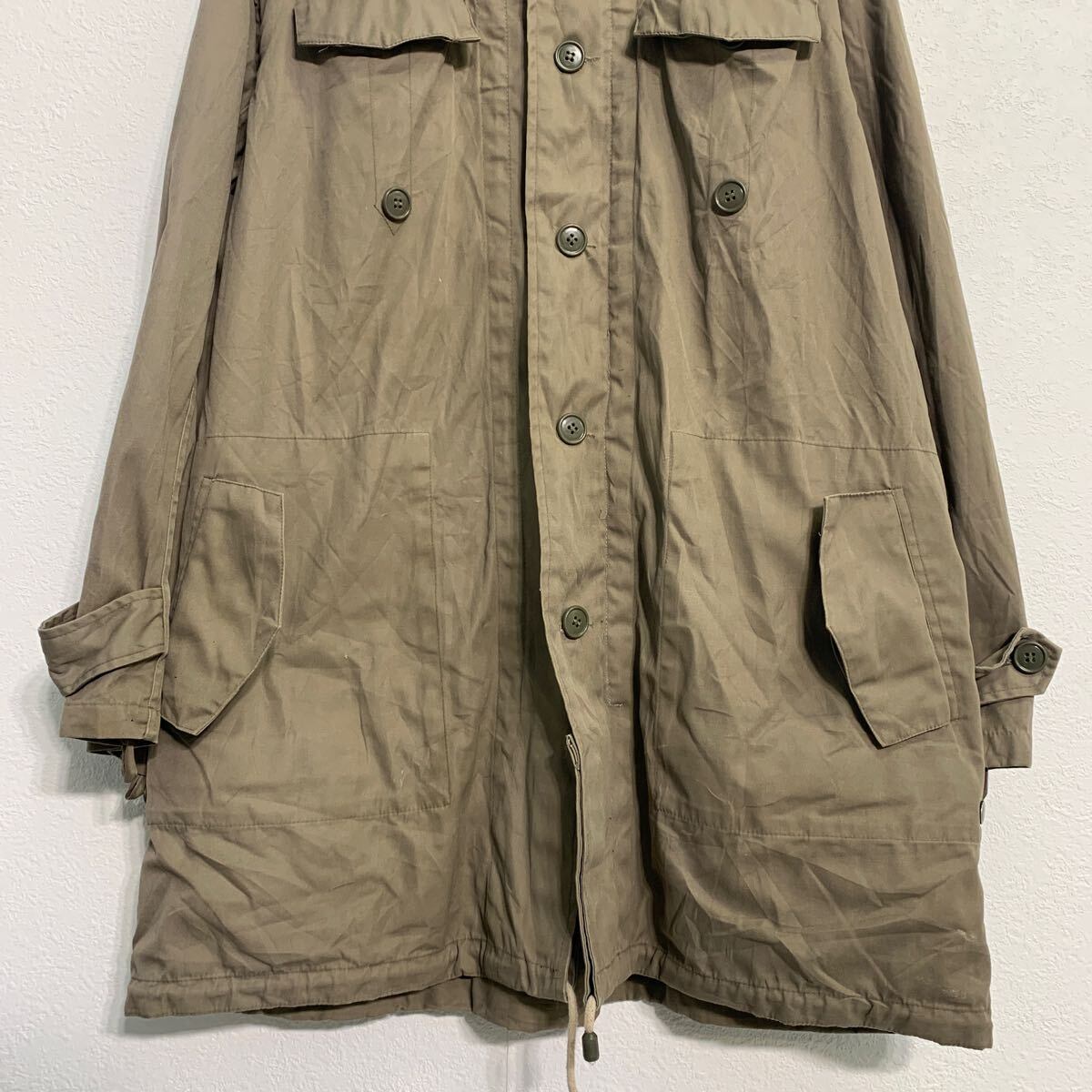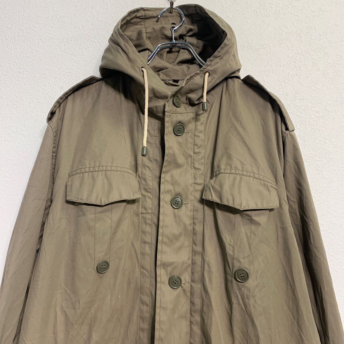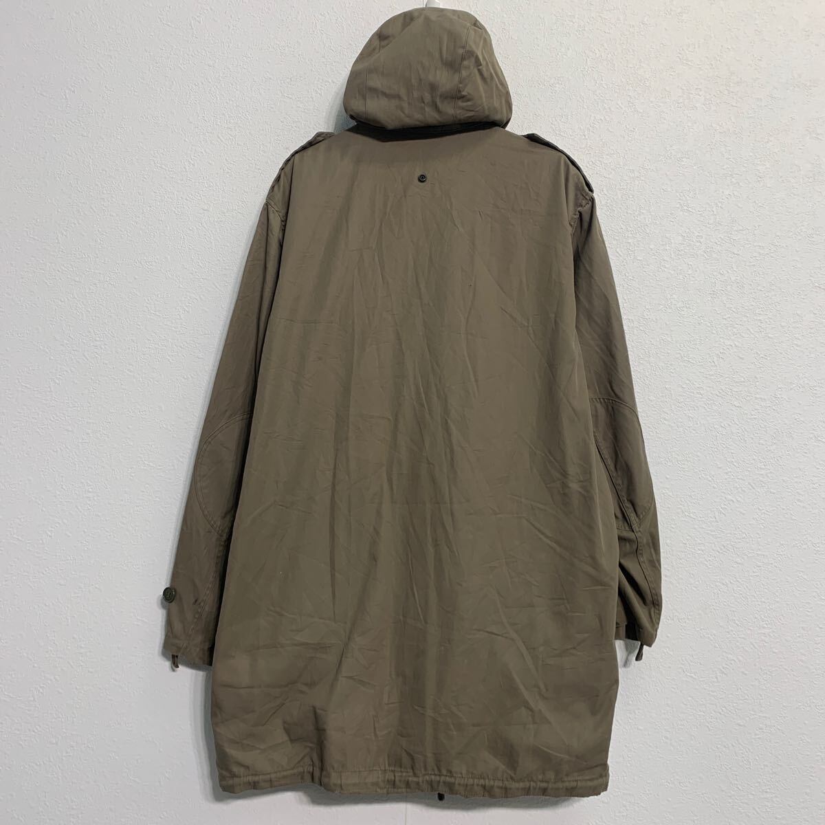 ジャケット L ベージュ ジップアップ ボタン エポレット フード付き ロング丈 アウター 古着卸 アメリカ仕入 a611-6717