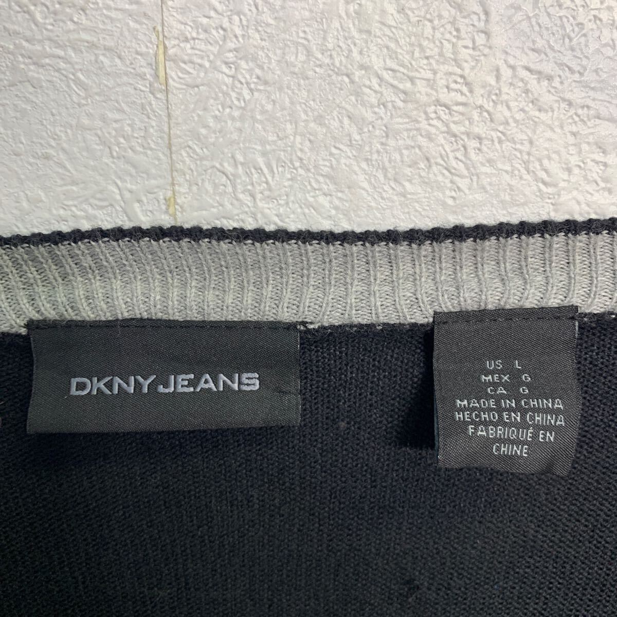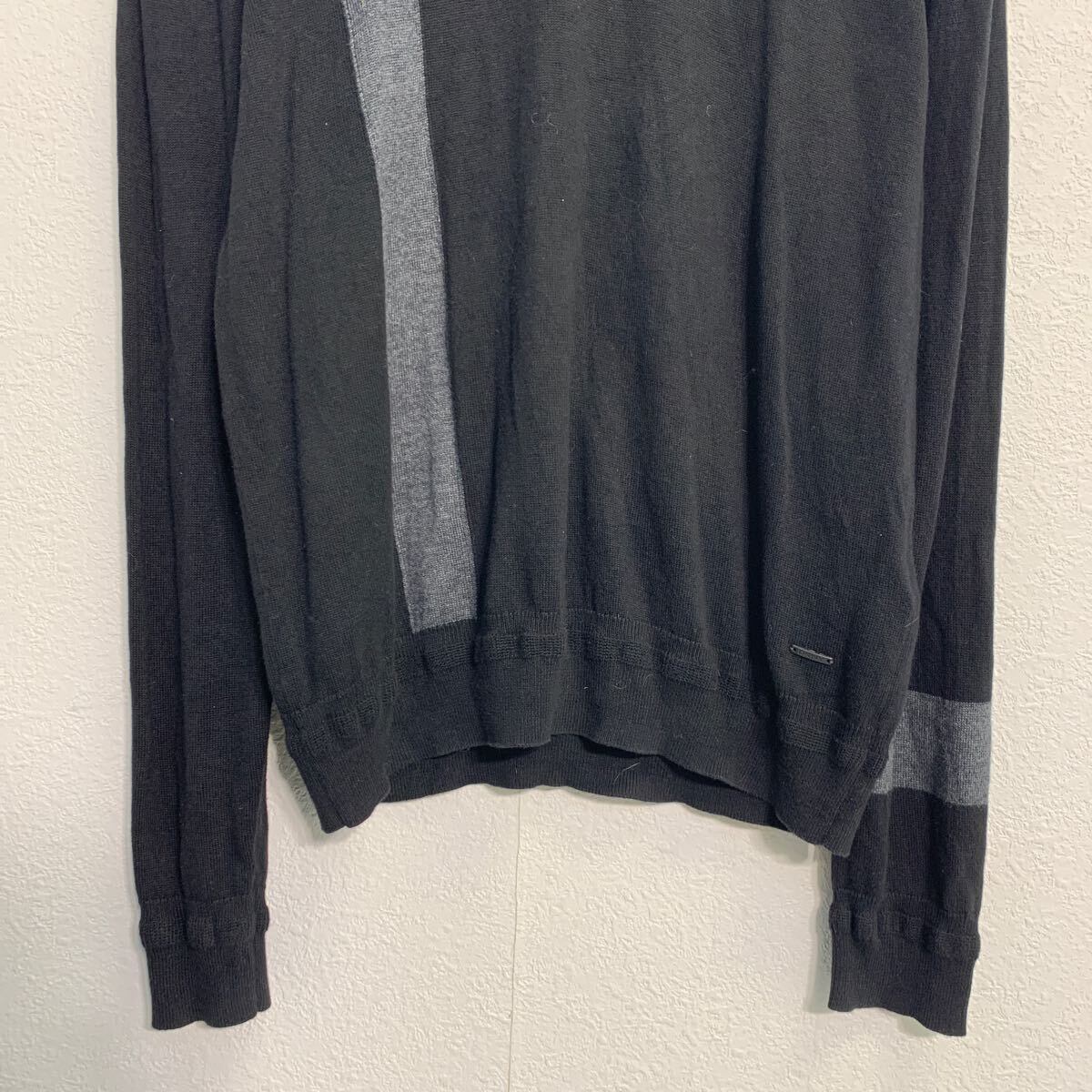 ニット セーター コットン混 レディース L ブラック ダークグレー Vネック ライン 切替 古着卸 アメリカ仕入 a611-6745