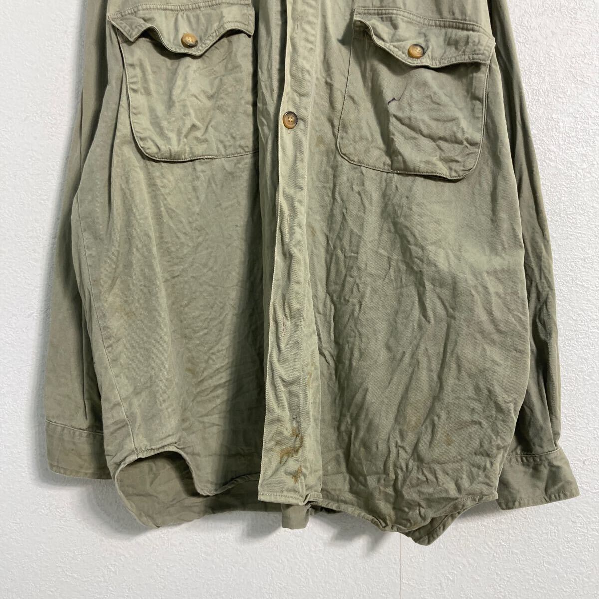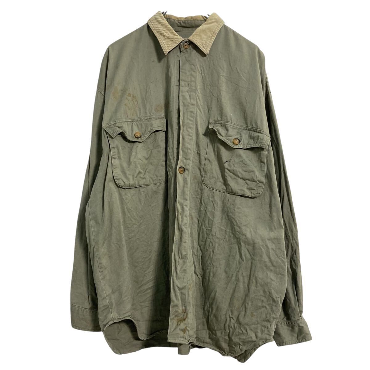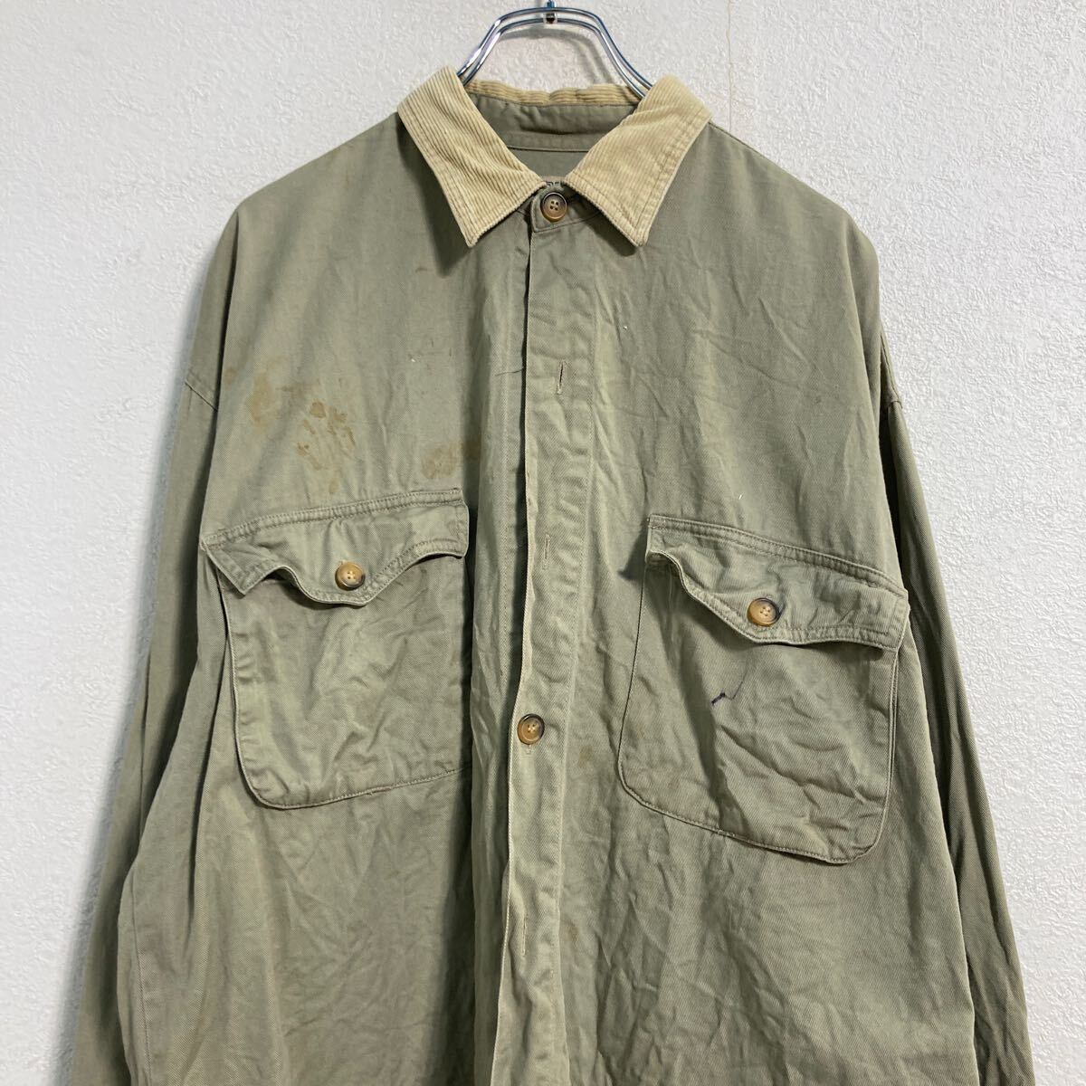 UNIONBAY 長袖 ワークシャツ L カーキ ベージュ 襟コーデュロイ 古着卸 アメリカ仕入 a611-6773