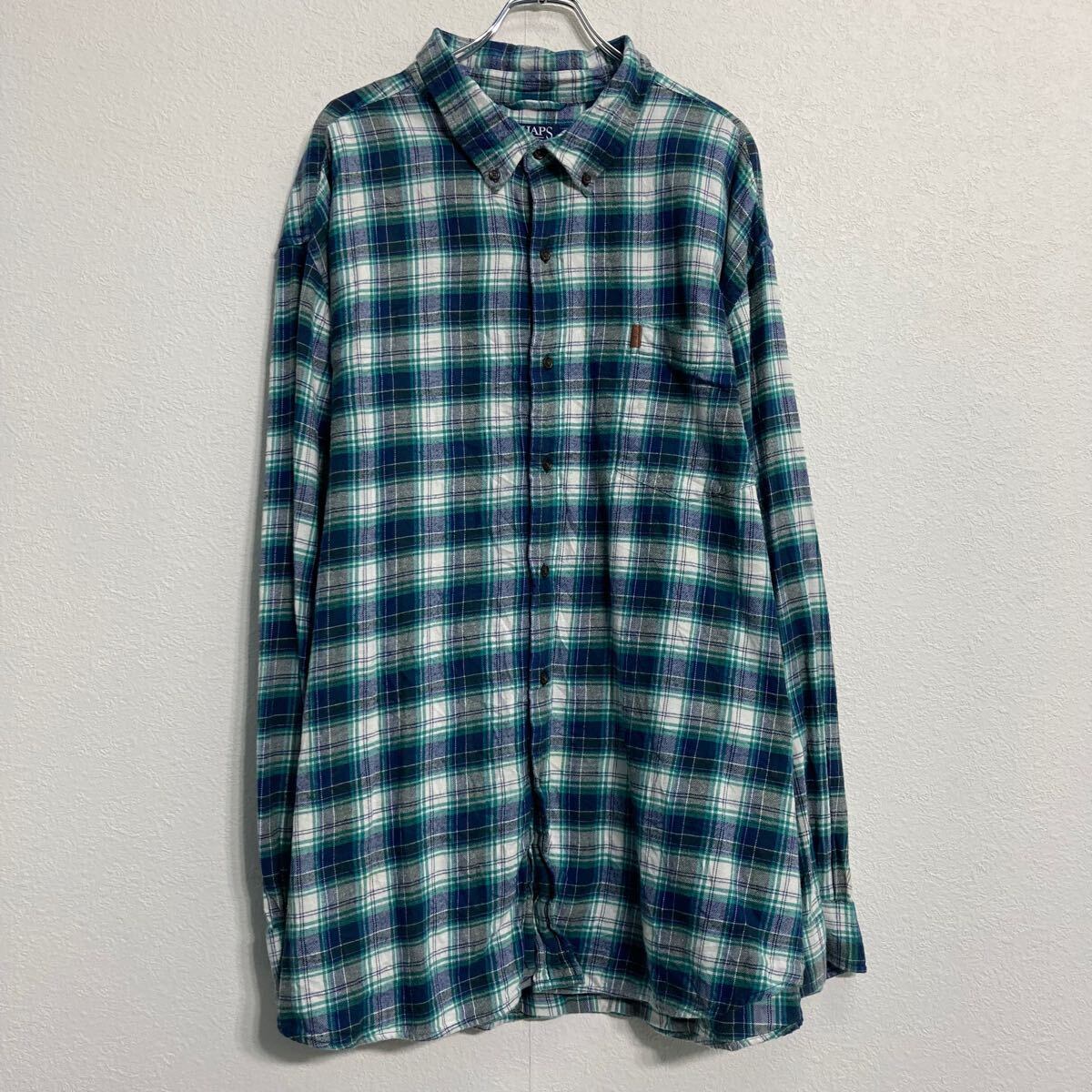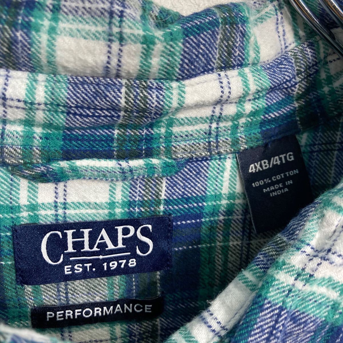 CHAPS 長袖 チェックシャツ 4XB グリー ブルー ビッグサイズ チャップス ポケット 古着卸 アメリカ仕入 a611-6983