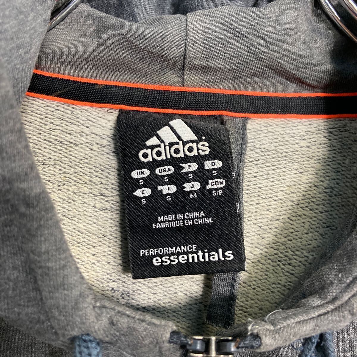 adidas ロゴスウェット パーカー アディダス S ダークグレー アディダス フルジップ 裏起毛 古着卸 アメリカ仕入 a611-6989