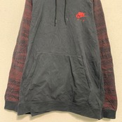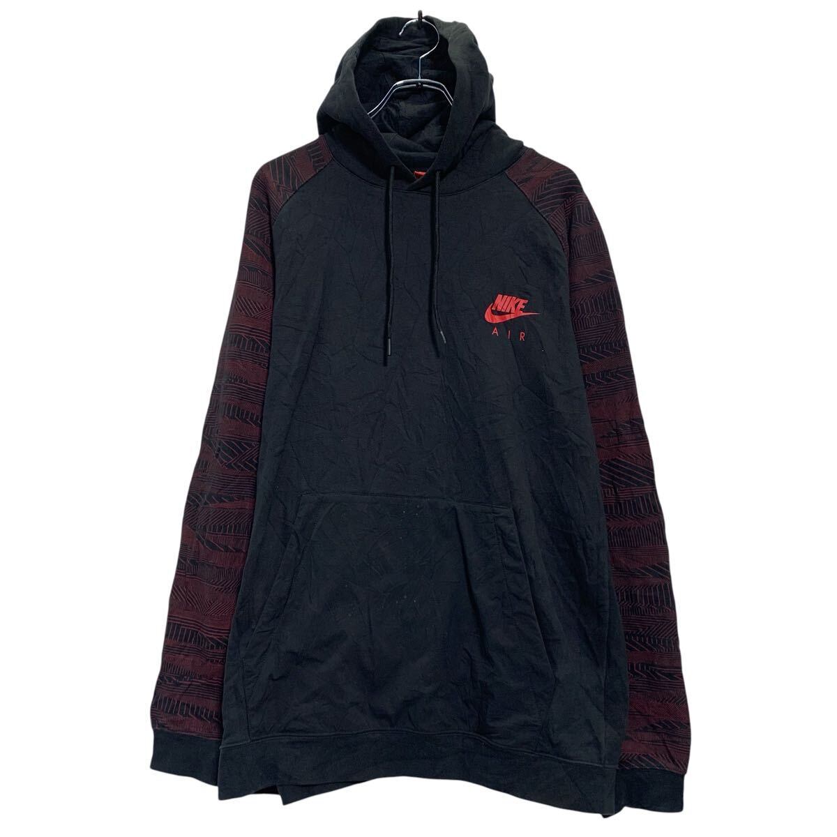 NIKE ロゴスウェット パーカー XL ブラック レッド ナイキ プルオーバー ビッグサイズ ラグラン 古着卸 アメリカ仕入 a611-7015