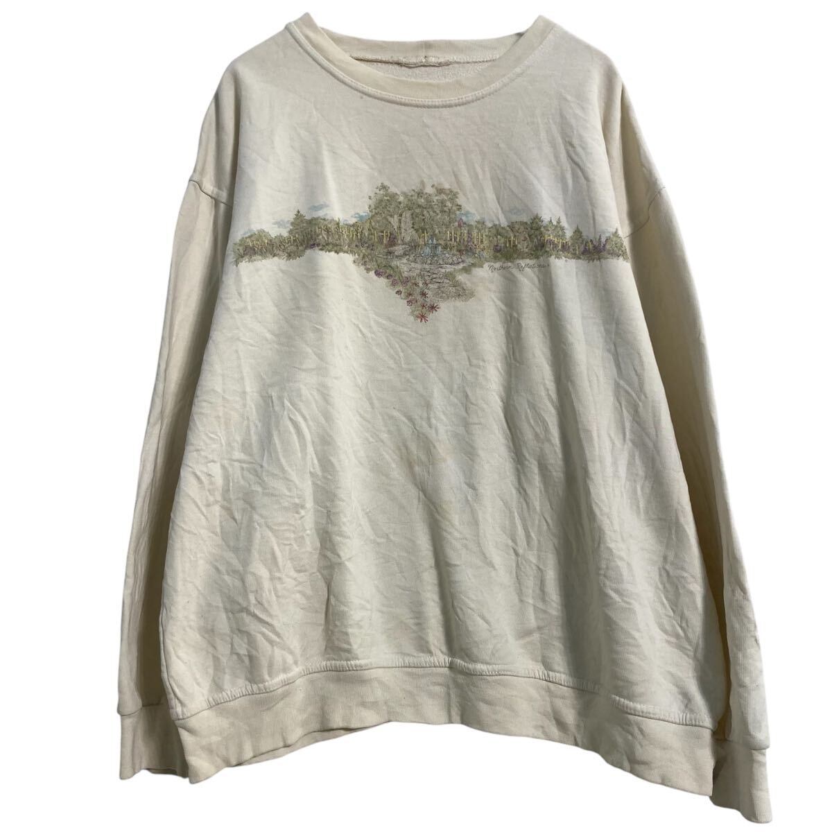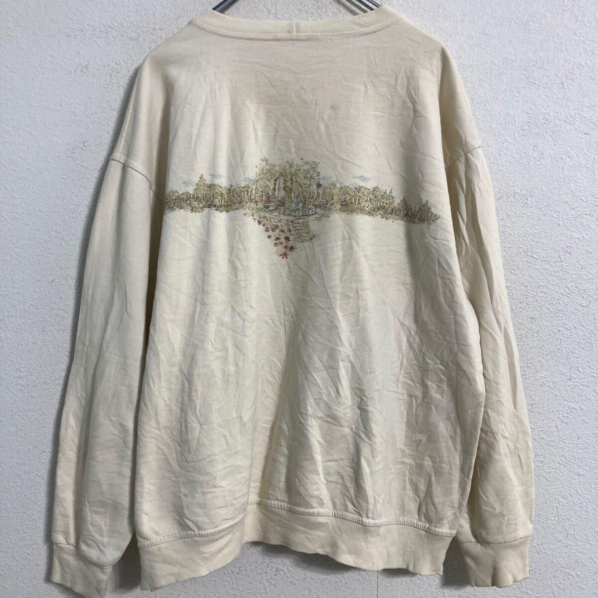 プリントスウェット トレーナー レディース L 程 アイボリー プルオーバー イラスト 古着卸 アメリカ仕入 a611-7076