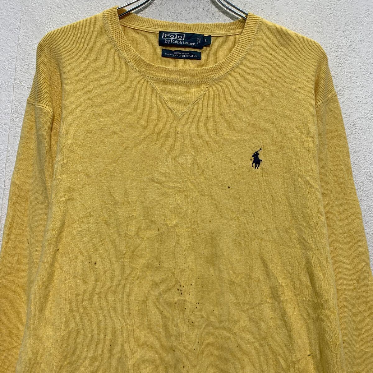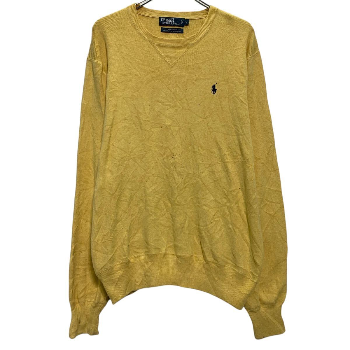 Polo Ralph Lauren コットンニット セーター L イエロー ポロラルフローレン プルオーバー ワンポイント 古着卸 アメリカ仕入 a611-7130