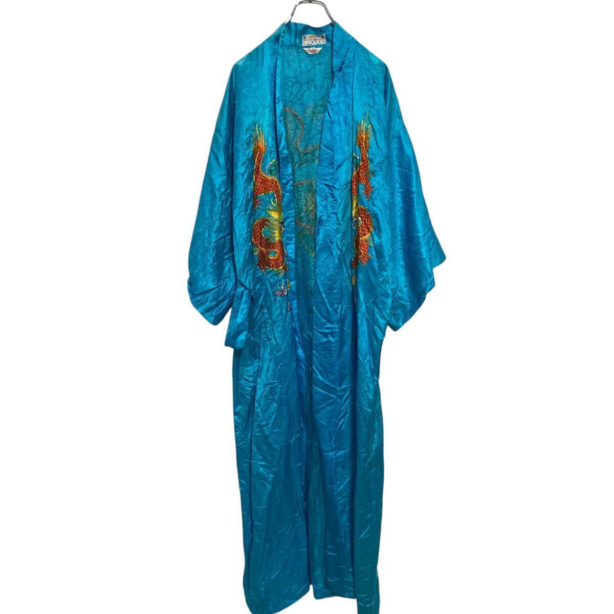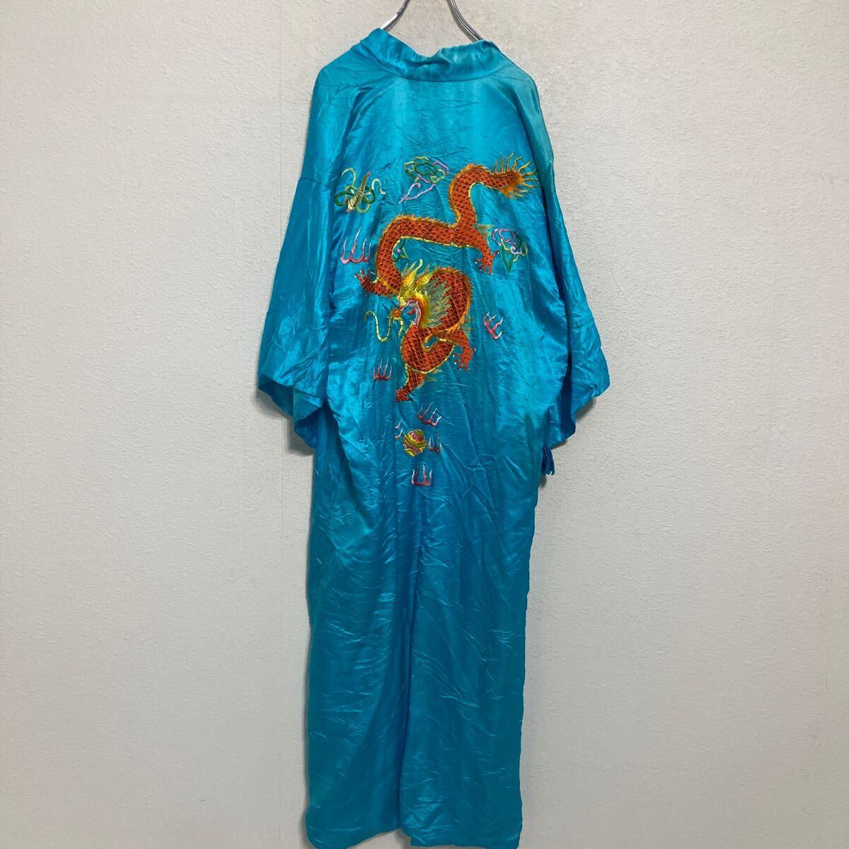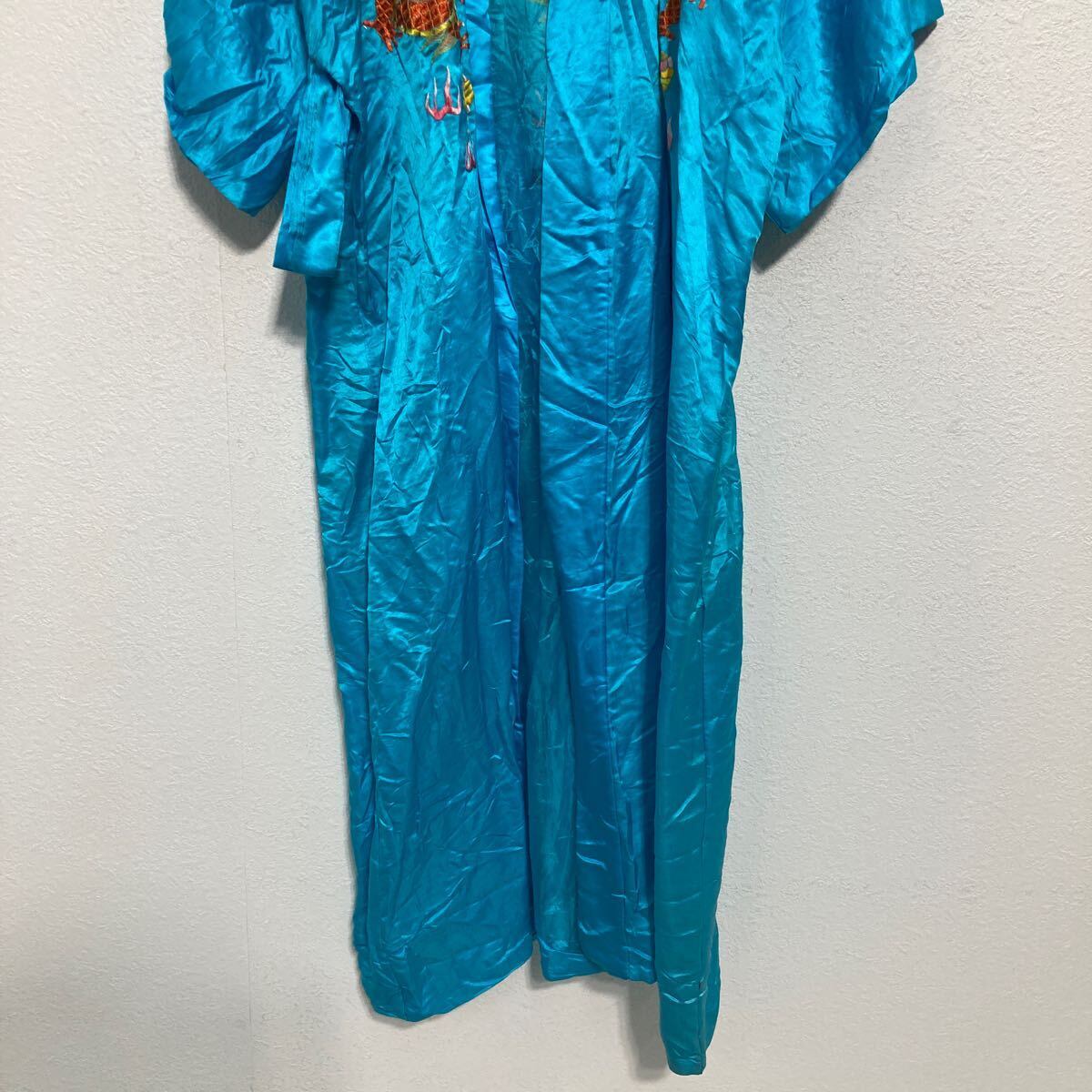 金龍 シルク チャイナガウン M ブルー ドラゴン オリエンタル 羽織り 腰紐 古着卸 アメリカ仕入 a611-7228