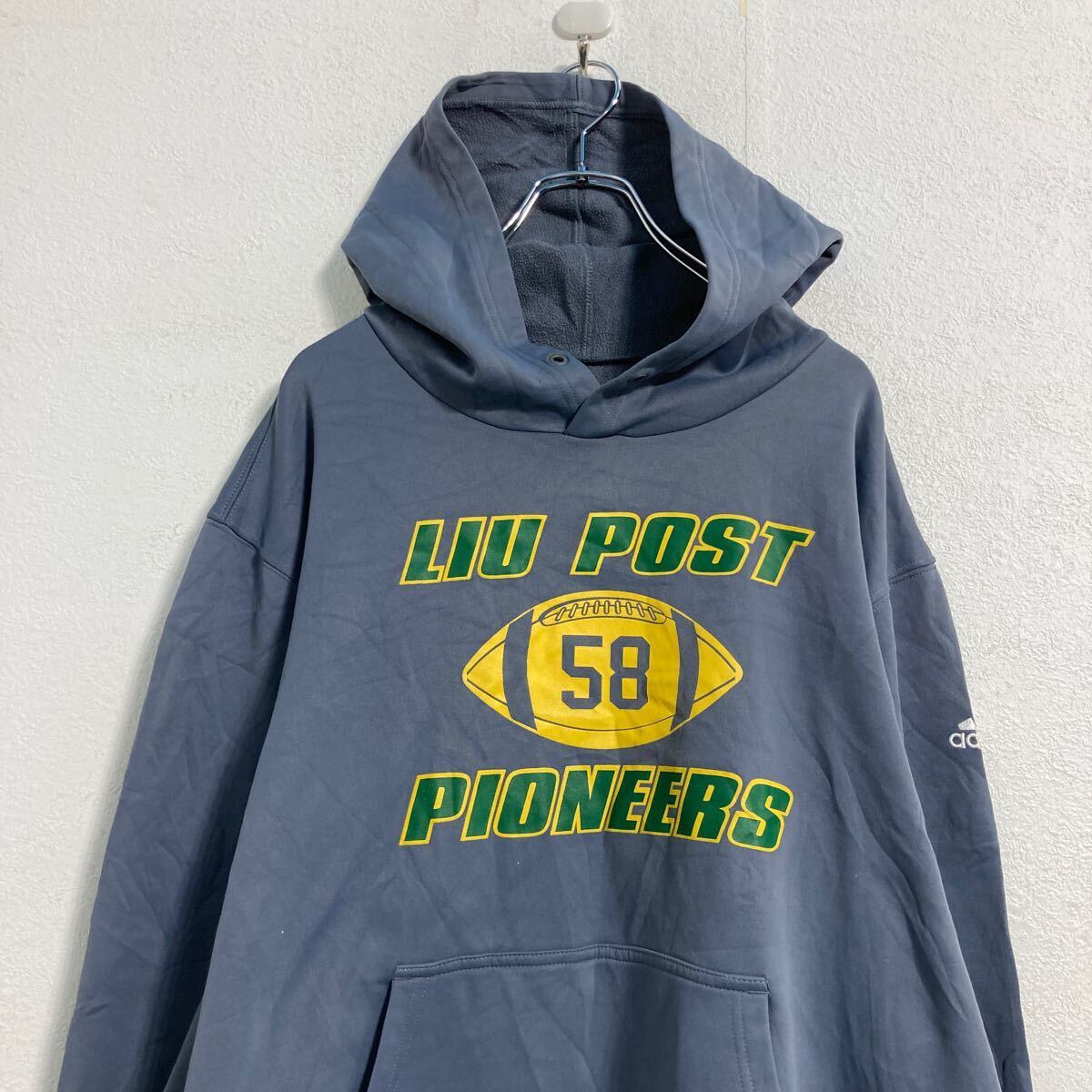 adidas プリントジャージ パーカー 2XL グレー アディダス プルオーバー ビッグサイズ 古着卸 アメリカ仕入 a611-7237