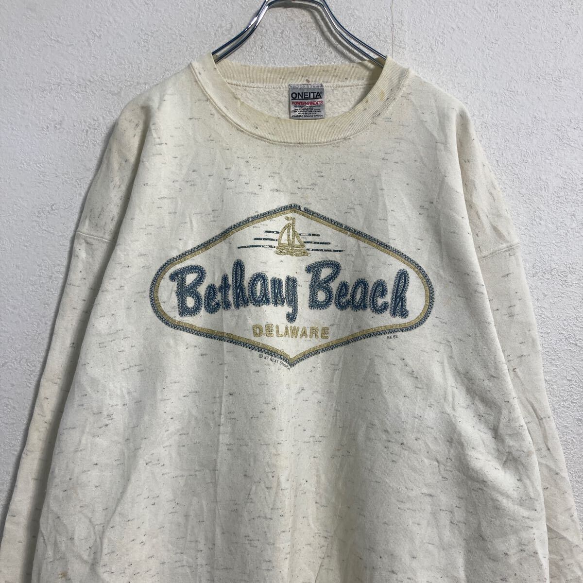 ONEITA プリントスウェット トレーナー XL 杢ホワイト オニータ ビッグサイズ 古着卸 アメリカ仕入 a611-7240