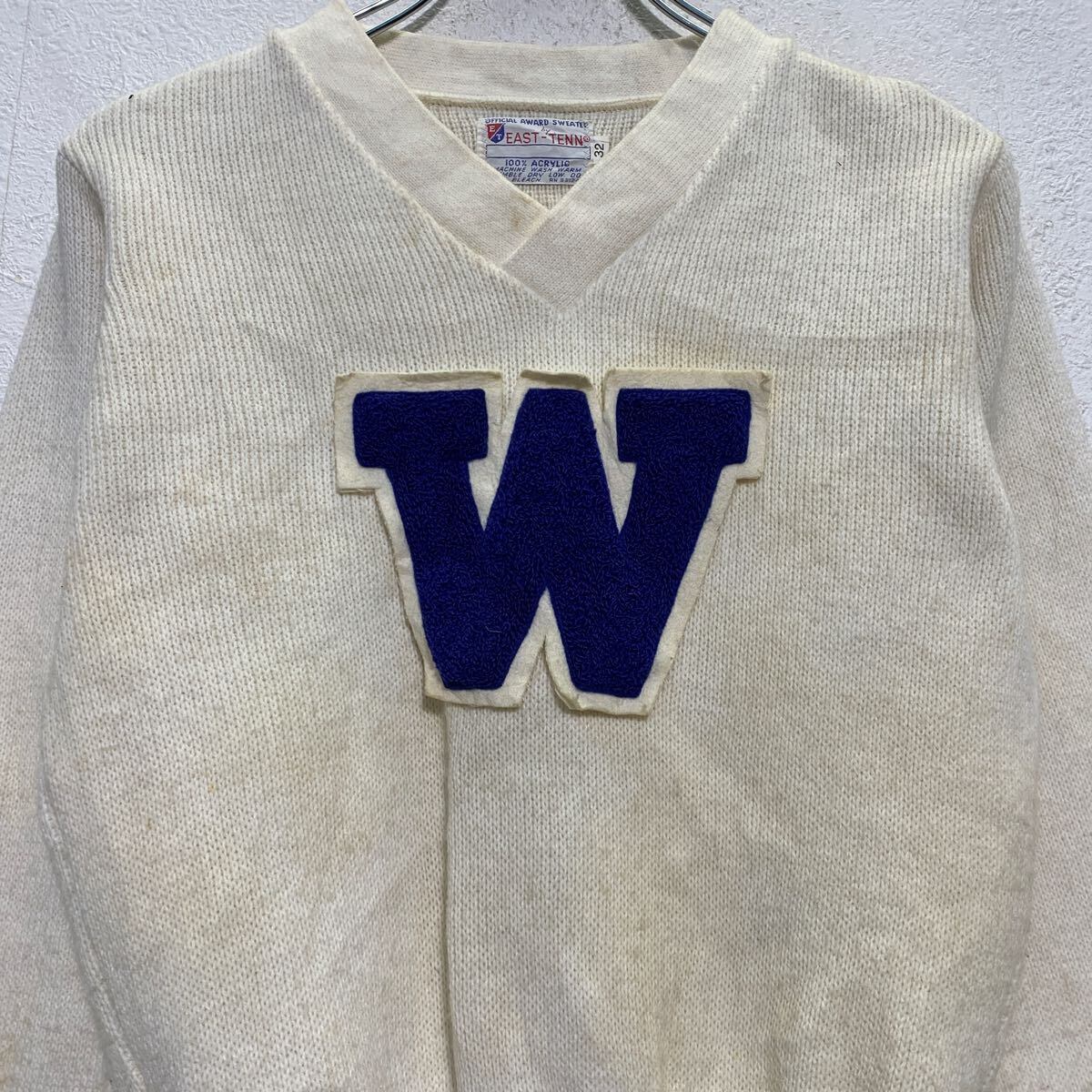 EAST TENN アクリルニット セーター L 程 オフホワイト プルオーバー Vネック 70s フェルト 刺繍 古着卸 アメリカ仕入 a611-7482