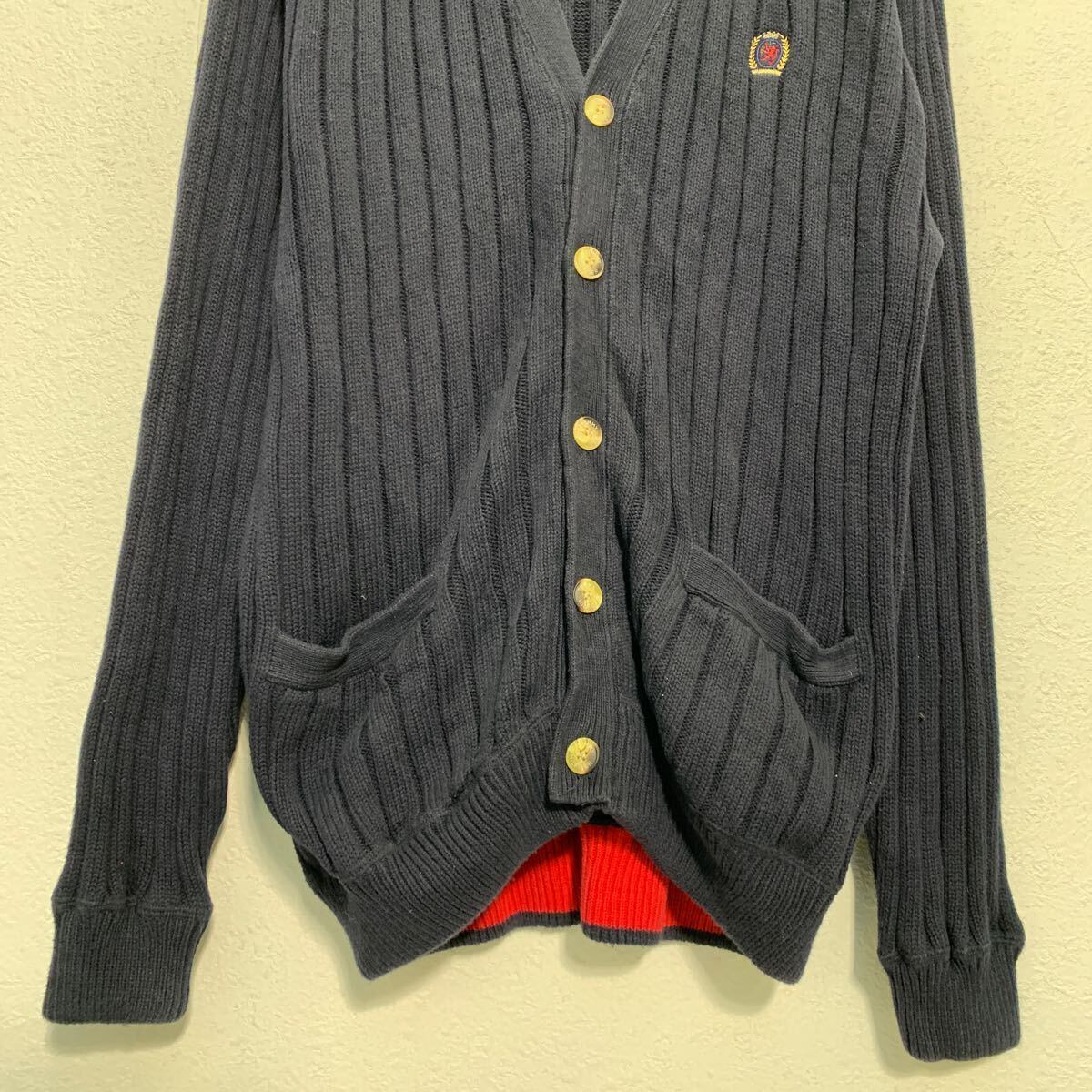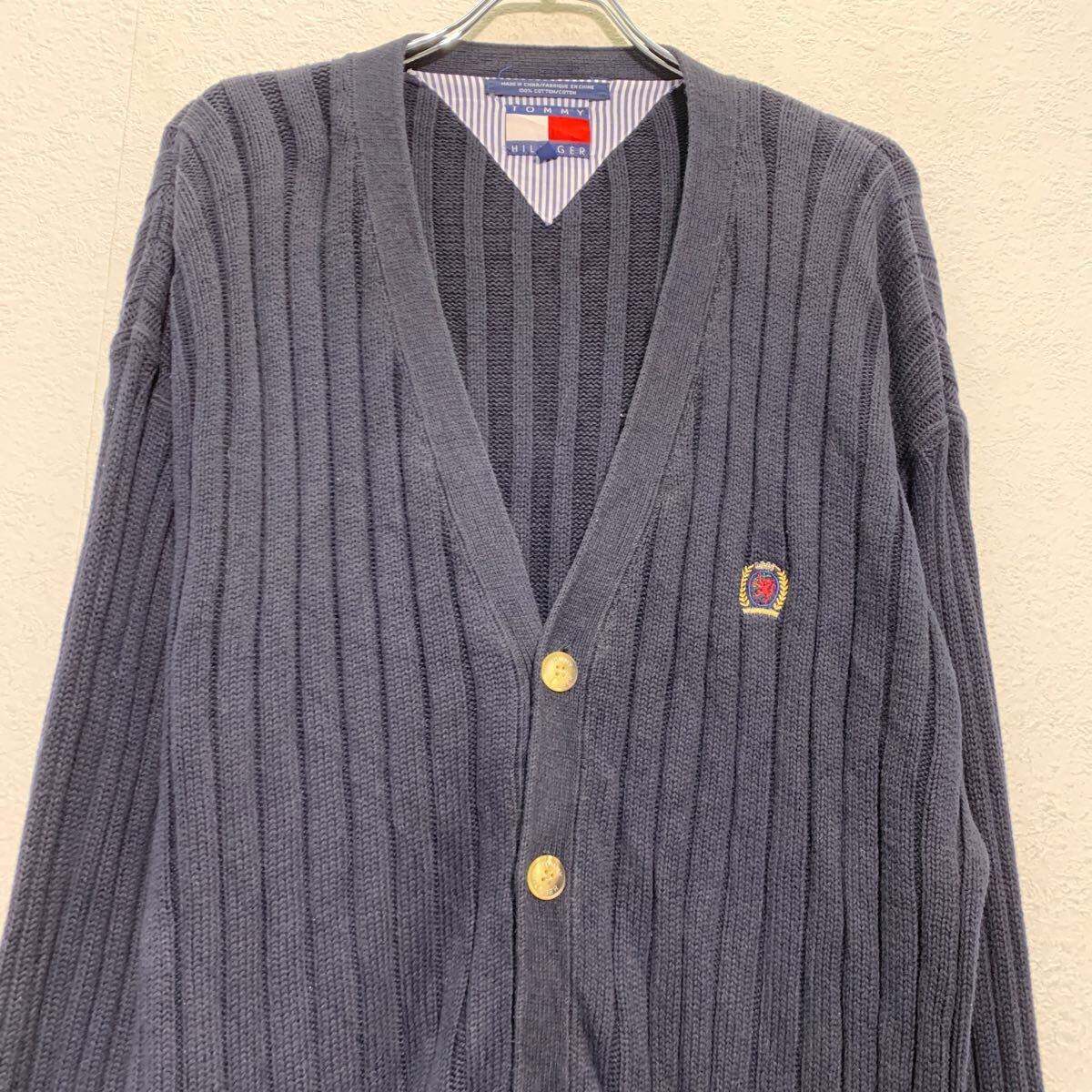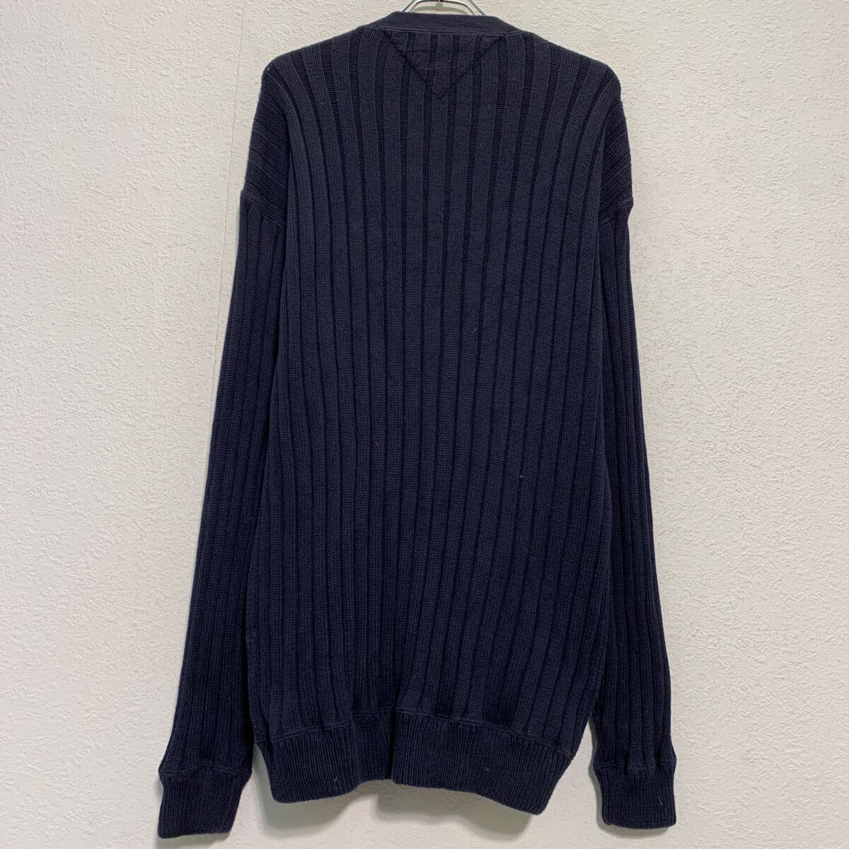 TOMMY HILFIGER コットンニット セーター カーディガン L ネイビー トミーヒルフィガー ボタン 刺繍 古着卸 アメリカ仕入 a611-7483