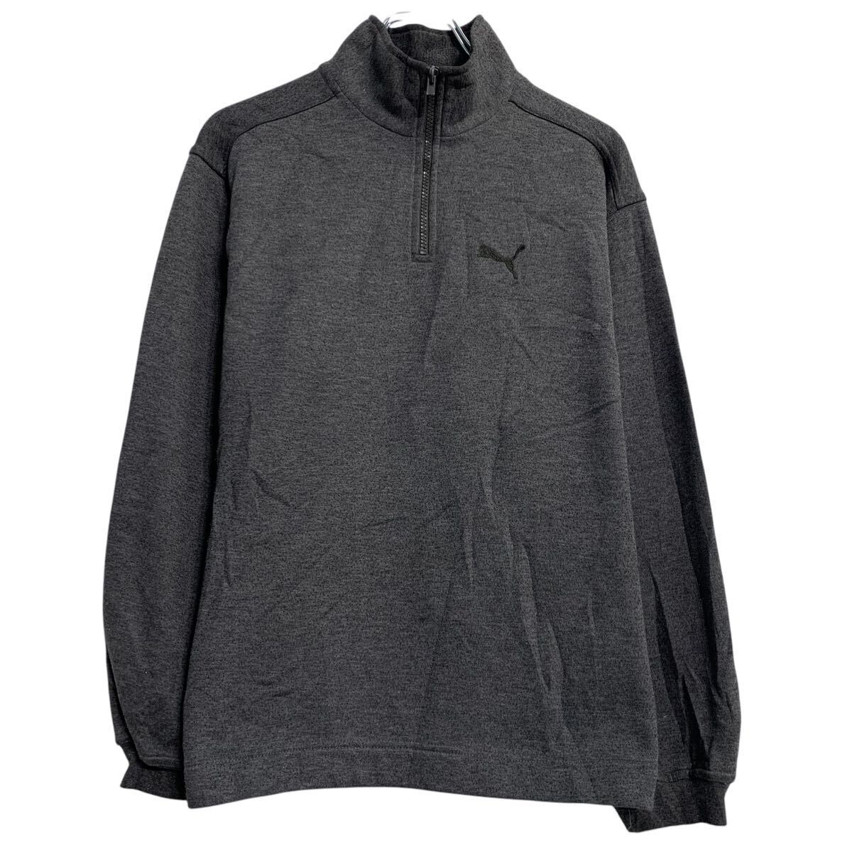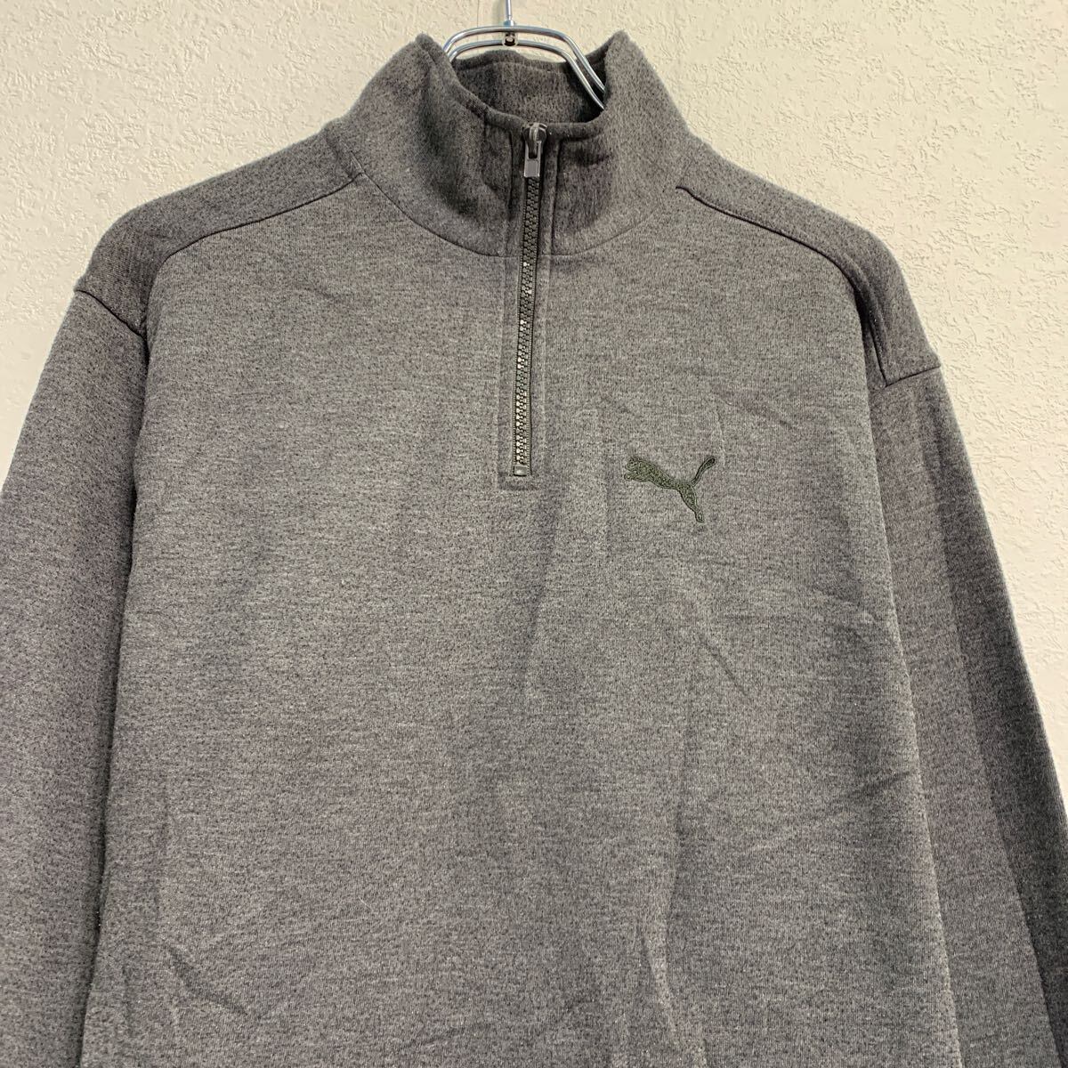 PUMA フリースジャケット L 程 ダークグレー プーマ ハーフジップ ワンポイント 刺繍 古着卸 アメリカ仕入 a611-7517