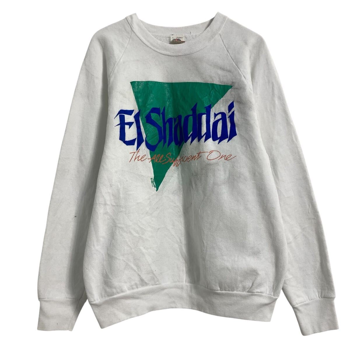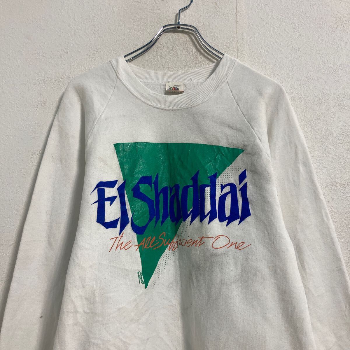 FRUIT of the LOOM プリントスウェット トレーナー L ホワイト フルーツオブザルーム アメリカ製 古着卸 アメリカ仕入 a611-7539