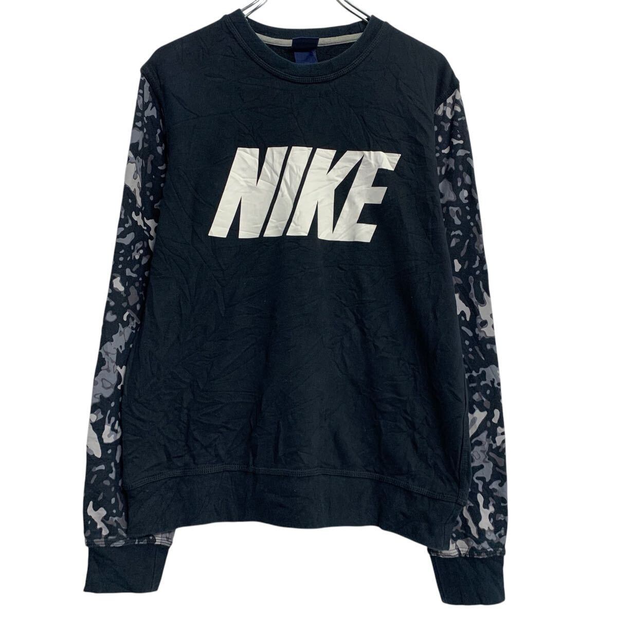 NIKE ロゴスウェット トレーナー M ブラック ホワイト ナイキ プルオーバー 迷彩 切替 古着卸 アメリカ仕入 a611-7592