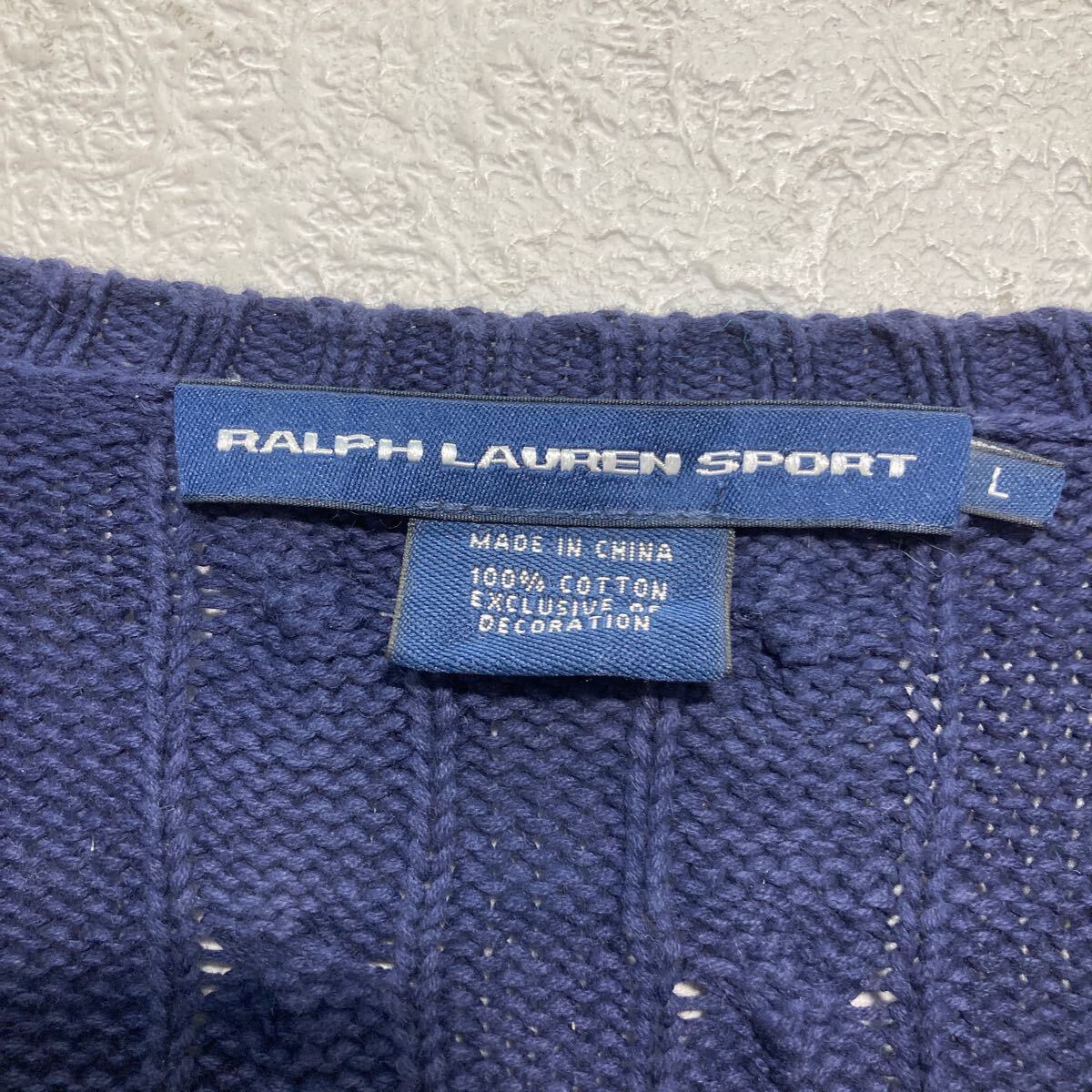 RALPH LAUREN SPORT コットン ニット セーター レディース L ネイビー ラルフローレン ケーブルニット 古着卸 アメリカ仕入 a611-7737